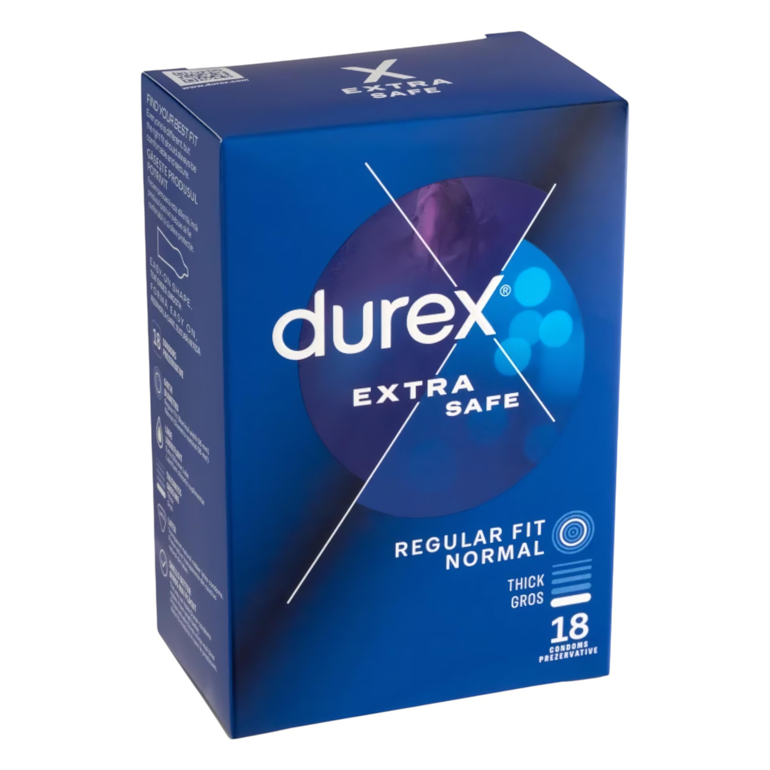 • 18 préservatifs Durex Extra Safe emballés individuellement