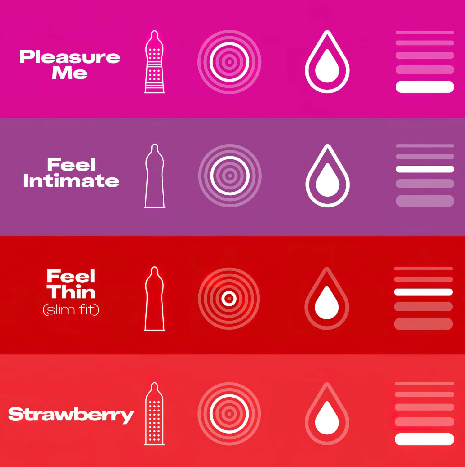 • 4 types de préservatifs différents dans une seule boîte - un choix idéal pour chaque humeur !