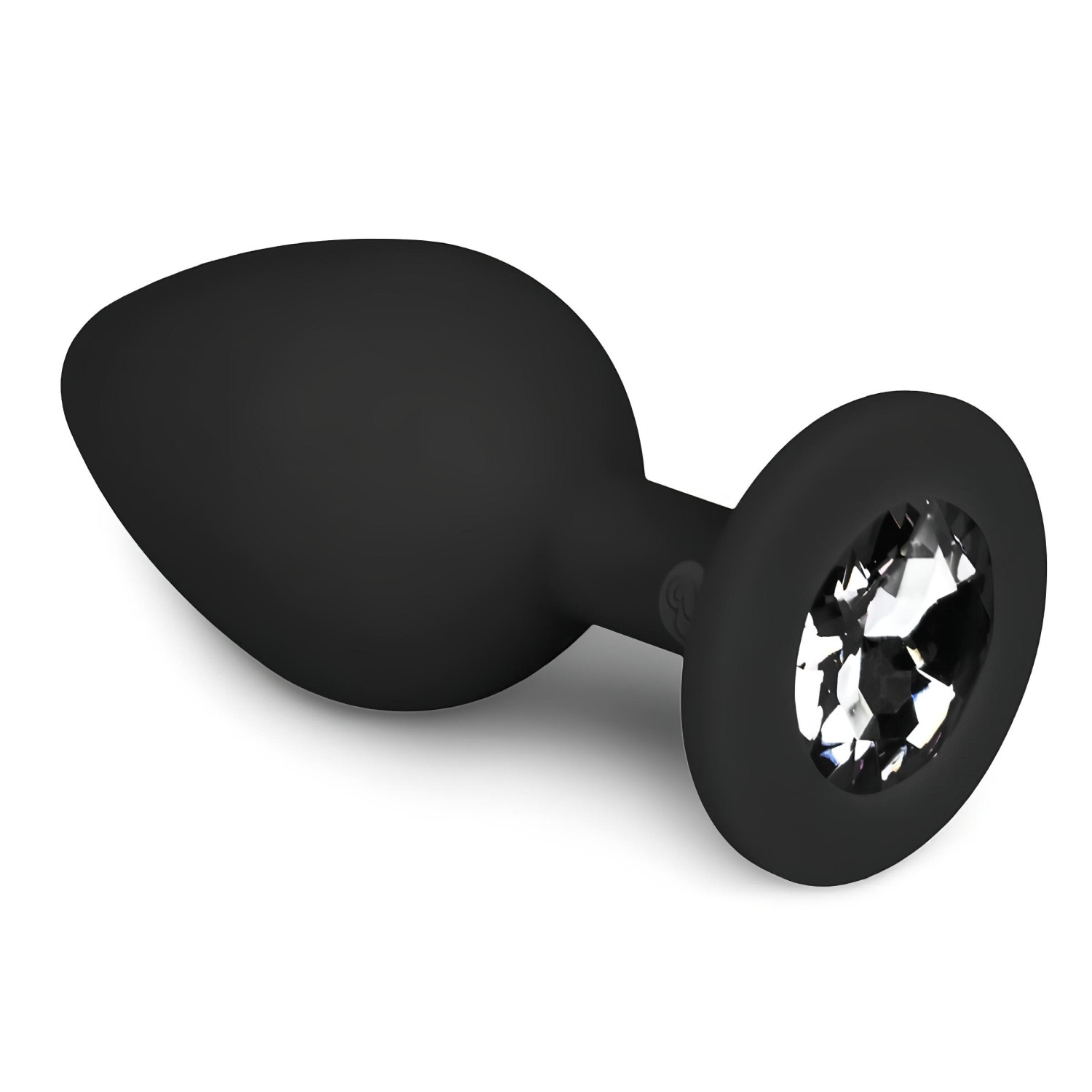 Easytoys Diamond - plug anal noir à pierre blanche (moyen)