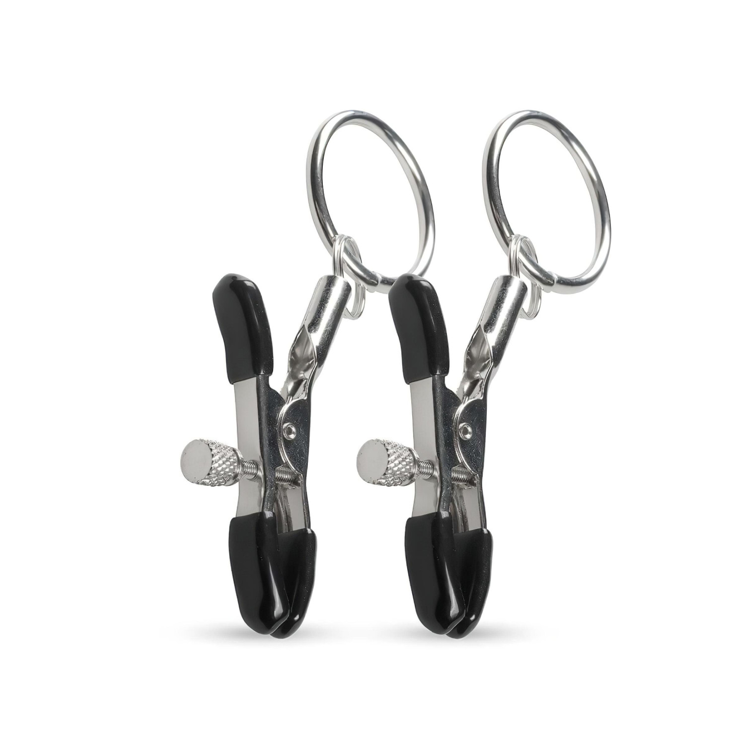 Paire de pinces à seins conçues pour des jeux excitants et dominants, avec de petits anneaux pour des expériences BDSM créatives!