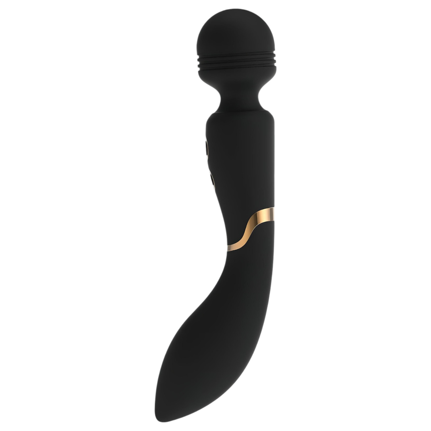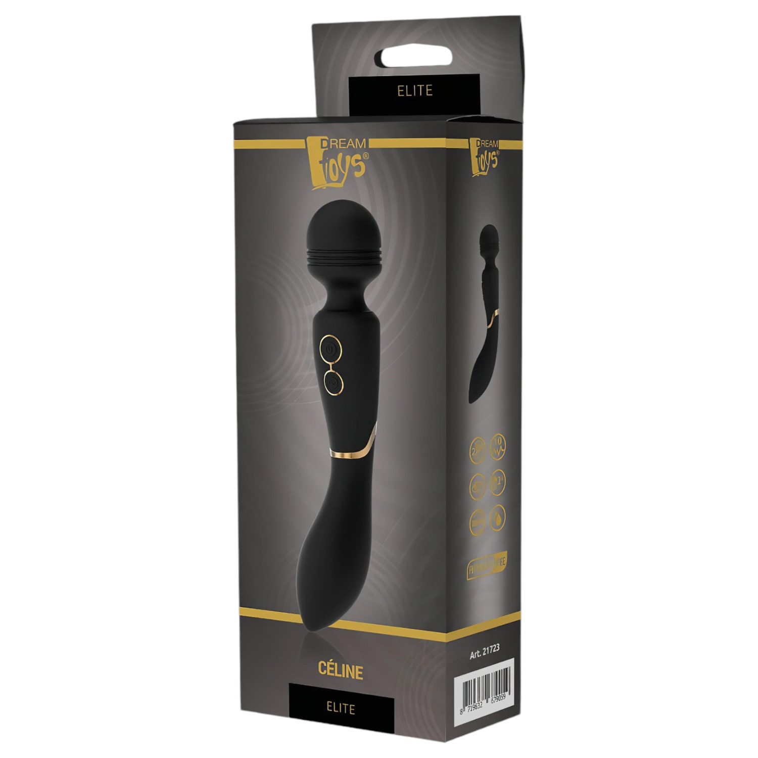 Le nouveau vibromasseur massant à la texture veloutée de la marque Elite, avec des détails dorés très élégants.