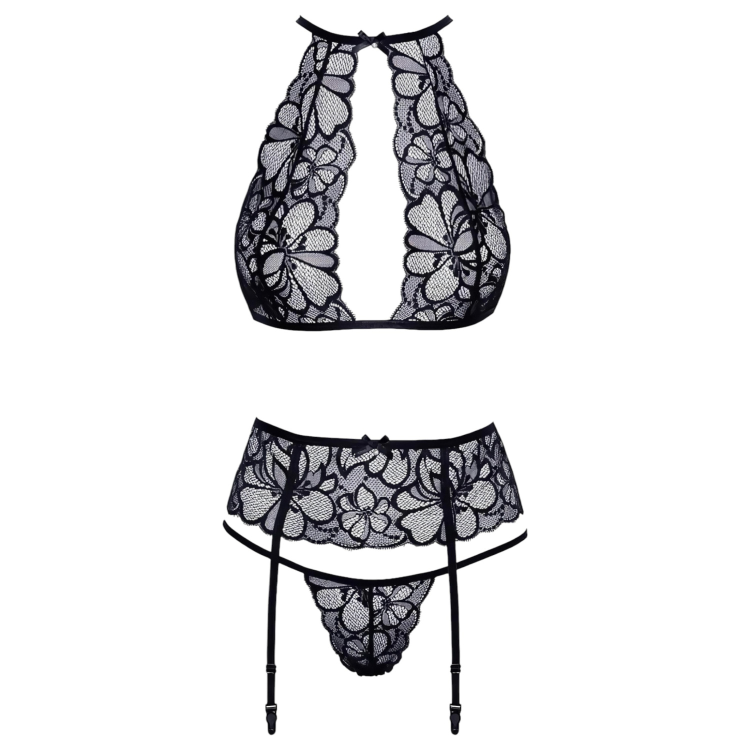 Ce petit ensemble de lingerie en résille fine à trois pièces offre une allure sensuelle et un confort maximal. Sa conception minutieuse et ses bretelles réglables permettent un ajustement parfait, tout en mettant en valeur les courbes féminines.