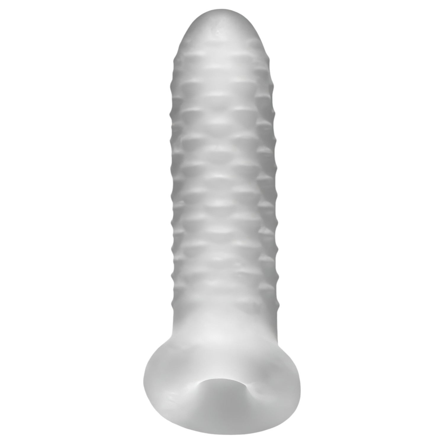 Mets un peu de lubrifiant à base d’eau, glisse la gaine sur ton pénis. Ne mets pas trop de lubrifiant pour éviter qu’elle ne glisse, mieux vaut en mettre moins pour bien la maintenir. Une fois la gaine en place, lubrifie l’extérieur, et il ne te reste plus qu’à profiter de ton nouveau membre ultra imposant et à ravir ton/ta partenaire !