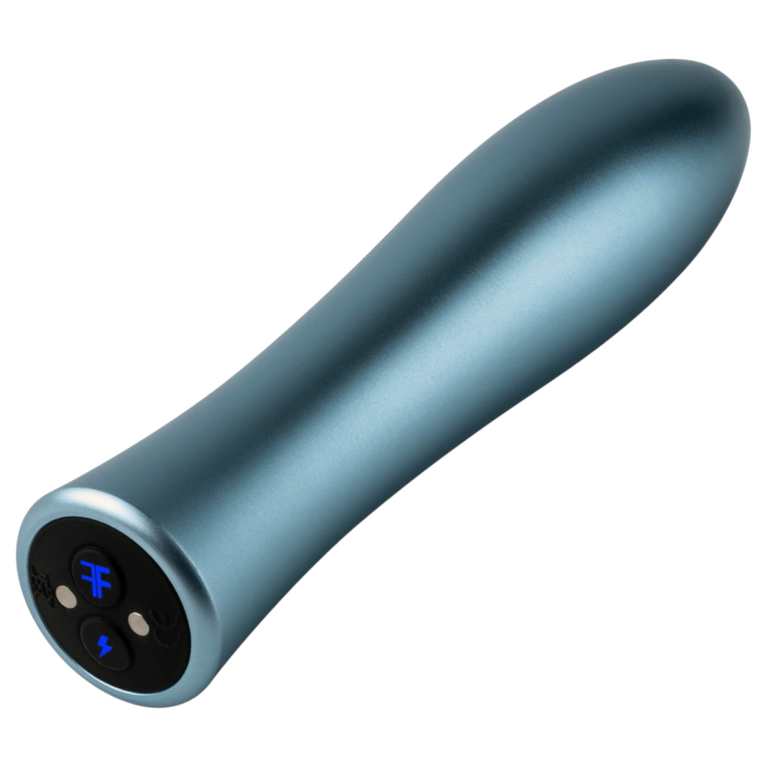 Le vibromasseur possède deux boutons : avec le bouton logo FF, allumez/éteignez-le et changez entre les 20 modes de vibration, tandis que le bouton éclair active la fonction boost.