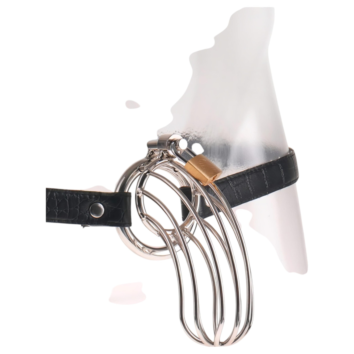 Une grille en acier puissante entoure ton pénis, le maintenant captivé par l'excitation et le désir.
