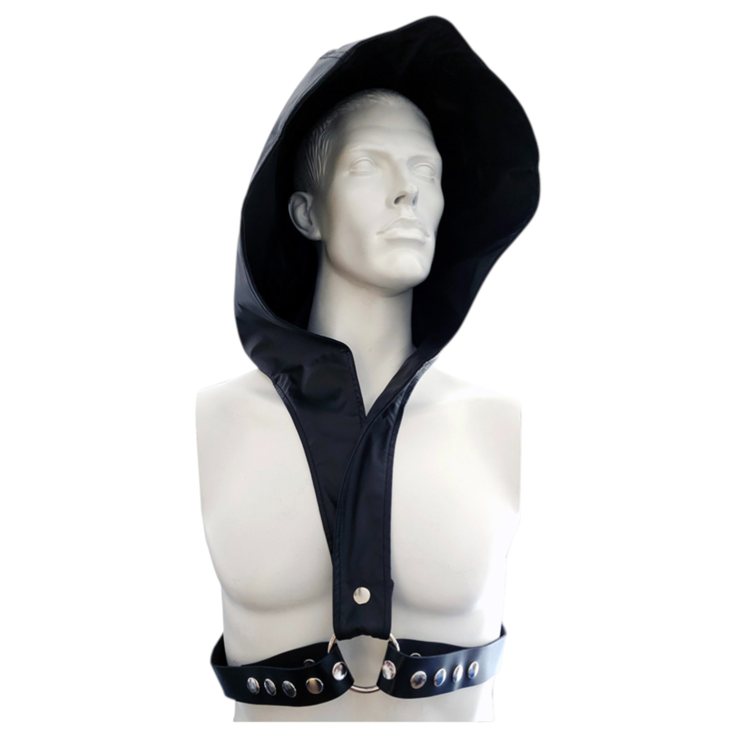 Style envoûtant, sensation de luxe et bondage fonctionnel – c'est le harnais à capuche Rouge (noir) !