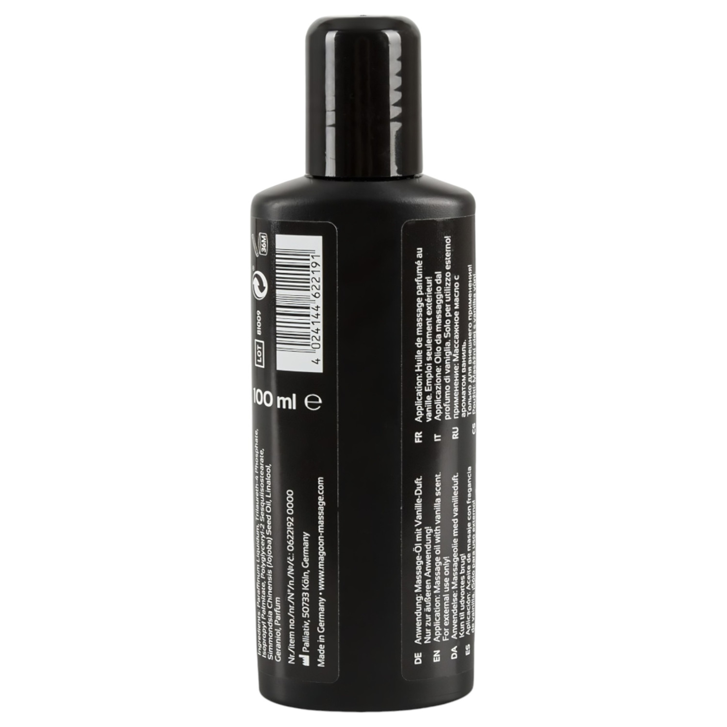 • 1 flacon de 100 ml d’huile de massage, bouchon vissable pratique