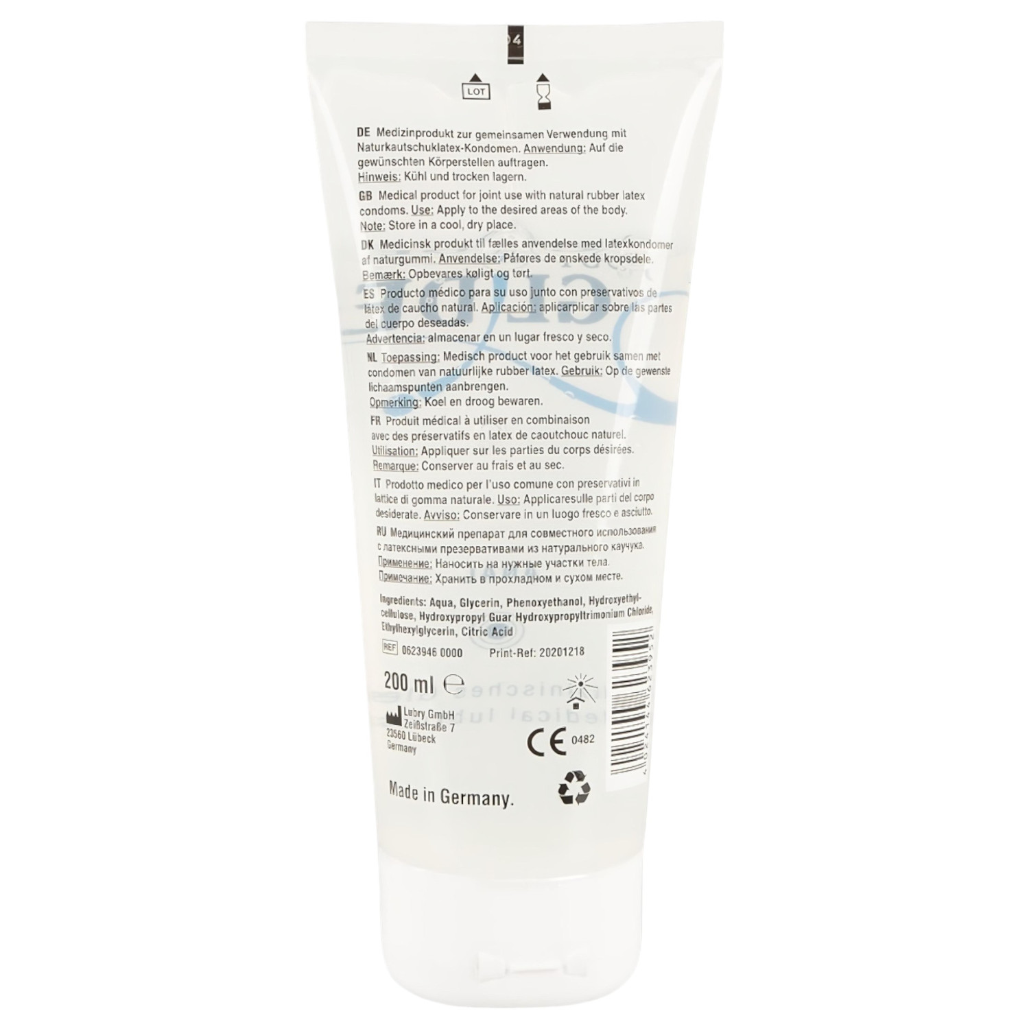 Aqua (eau), Glycérine, Phenoxyethanol, Hydroxyethylcellulose, Hydroxypropyl Guar Hydroxypropyltrimonium Chloride, Ethylhexylglycerin, Acide citrique