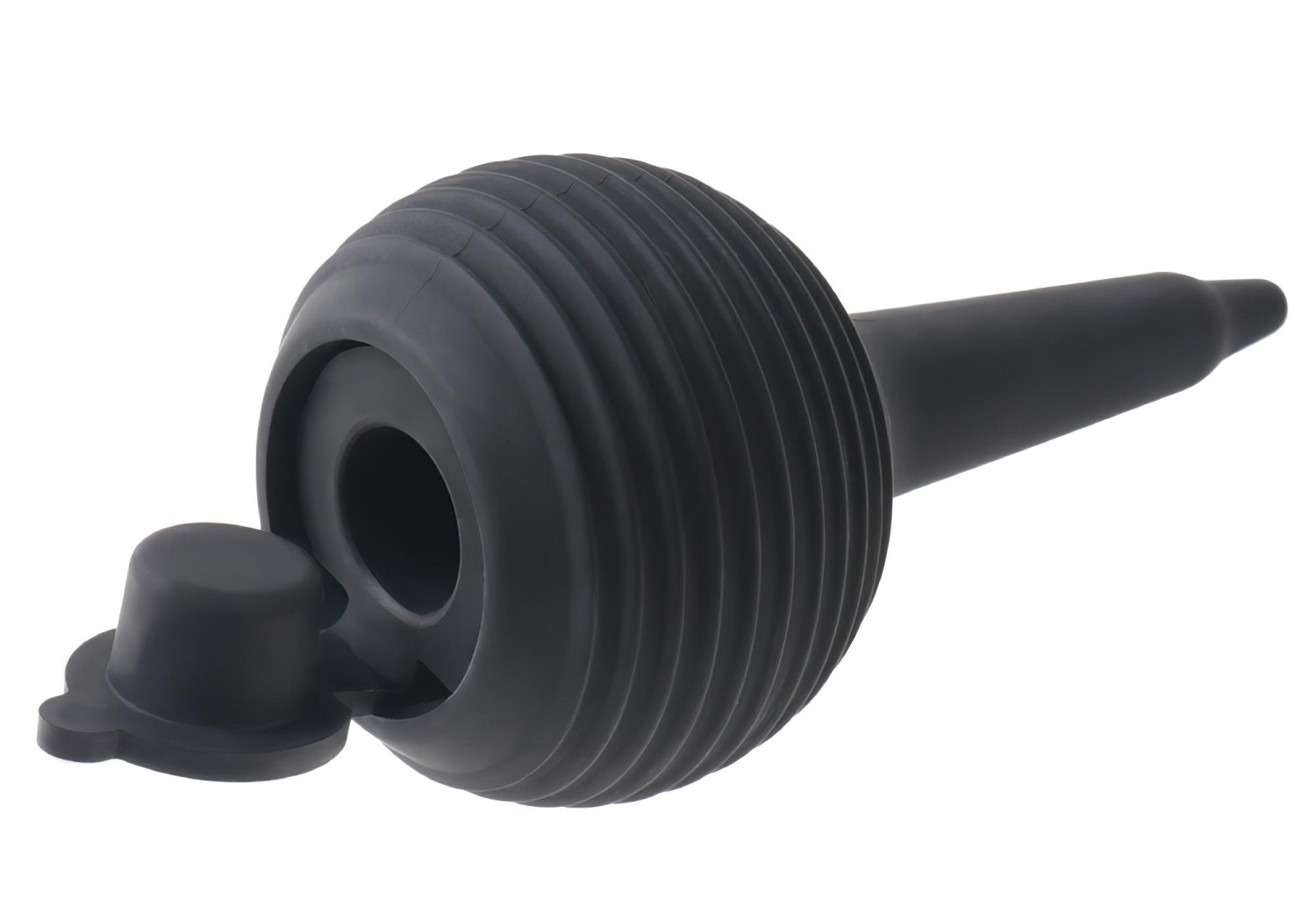 • Remplissage avec liquide : Retirez la pompe noire à la base du dildo, remplissez-le avec le liquide de votre choix, puis replacez la pompe.