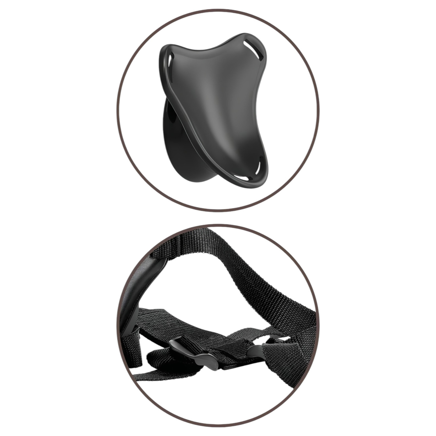 • Nouveau système de fixation pin-point professionnel sur le harnais (pas d’anneaux) - il suffit d’appuyer la base du gode sur la surface lisse, et c’est prêt à l’emploi