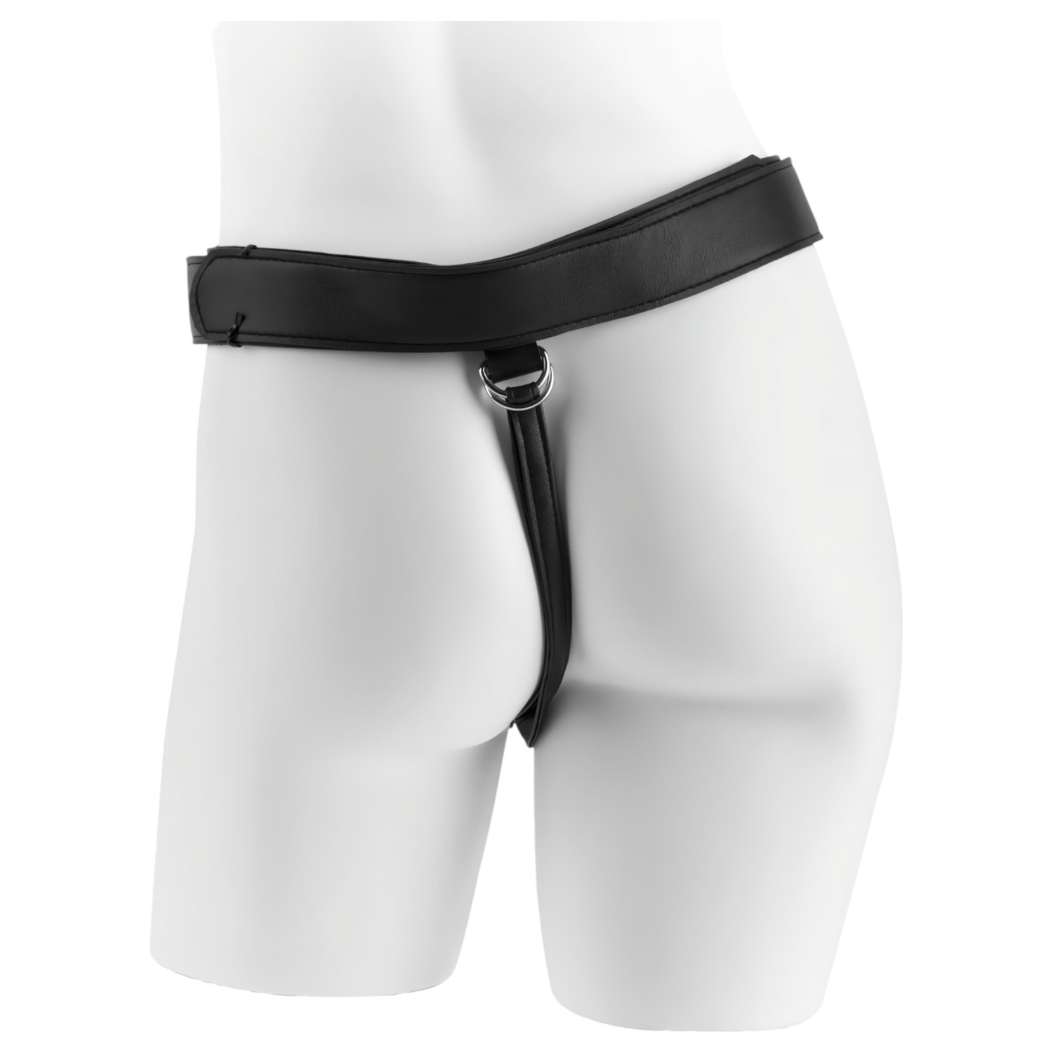 • Matériaux : métal, vinyle, velcro, silicone (anneaux), PVC (gode) - conforme aux normes UE, sans phtalates