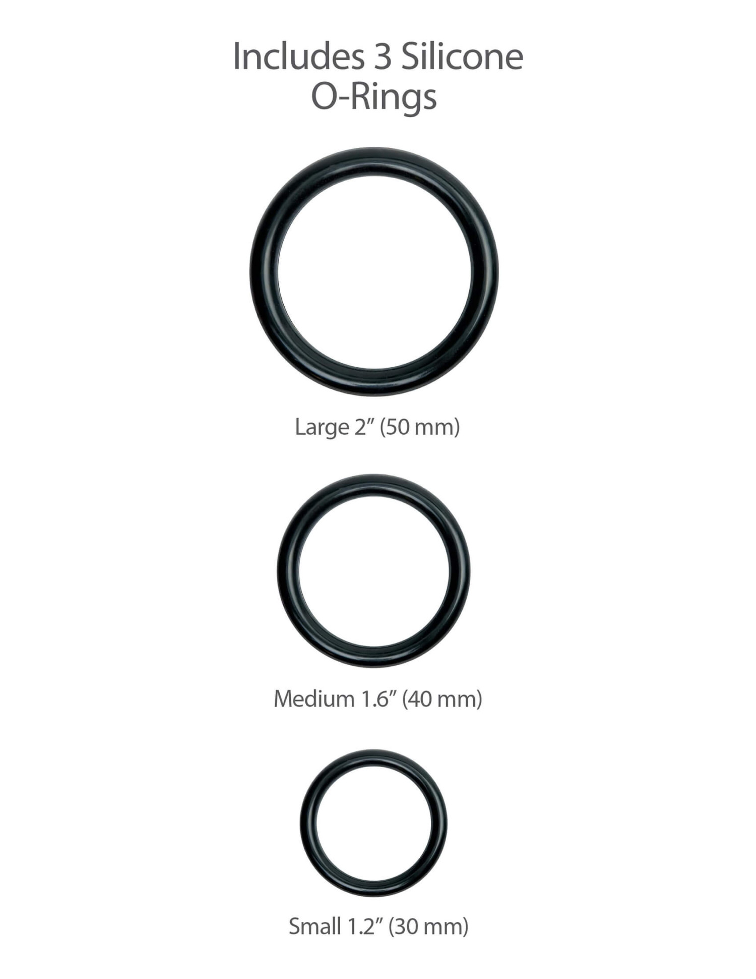 • Trois anneaux en silicone fournis - compatibles avec différentes tailles de jouets