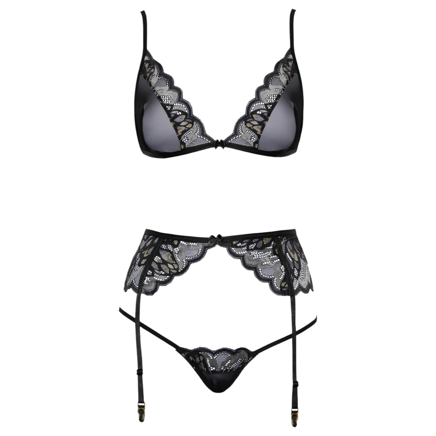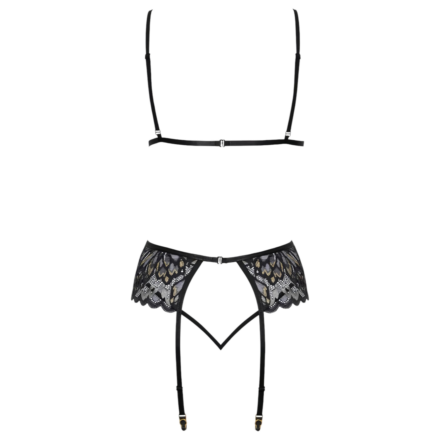 Sensuelle et luxueuse, cette parure de lingerie avec broderies délicates et détails transparents est parfaite pour une séduction raffinée !
