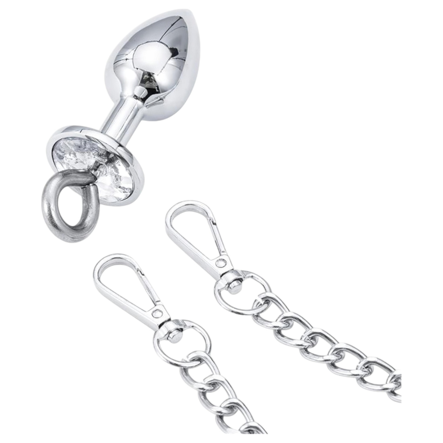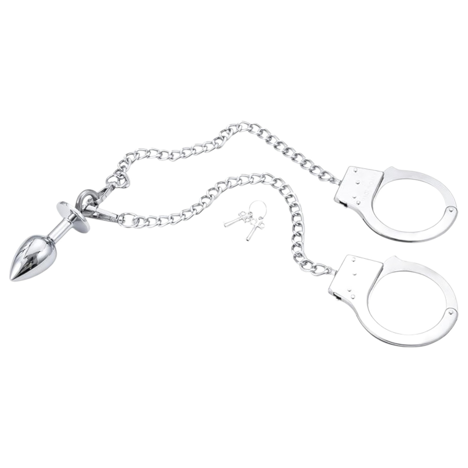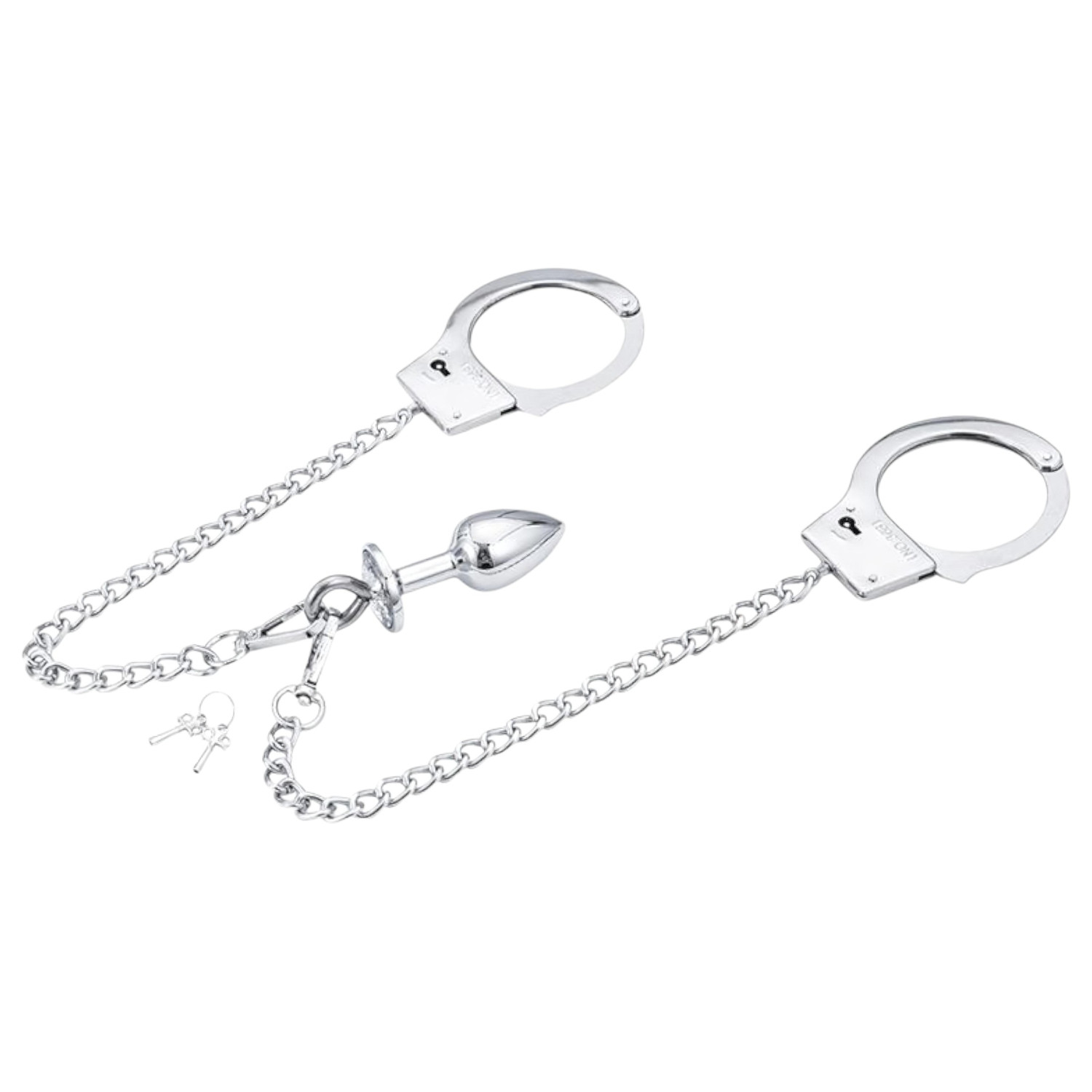 • Un accessoire unique : menottes en métal et plug anal, à relier ensemble !