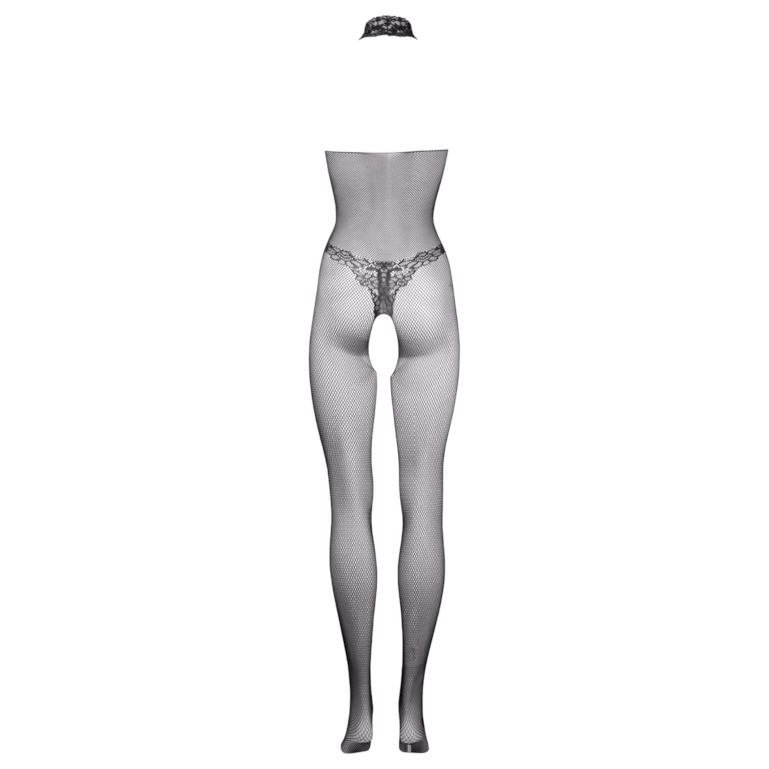 • 1 bodystocking dentelle et maille, col tour de cou, entrejambe ouvert