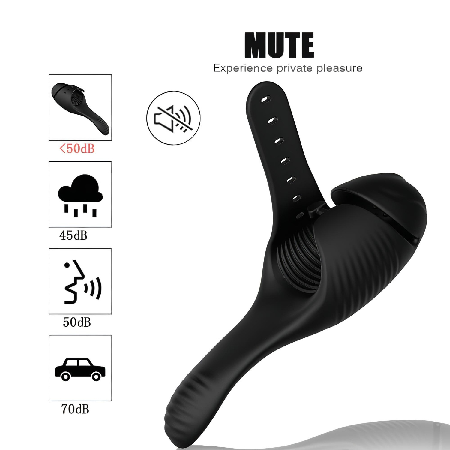 • Attache la sangle, ton gland se retrouve sous le capuchon - il ne te reste plus qu’à activer les vibrations.