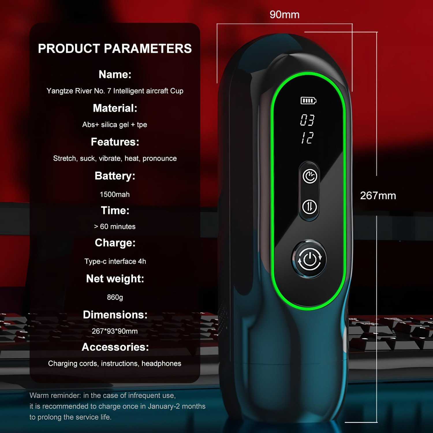 • Masturbateur vibrant, aspirant et à mouvement vertical