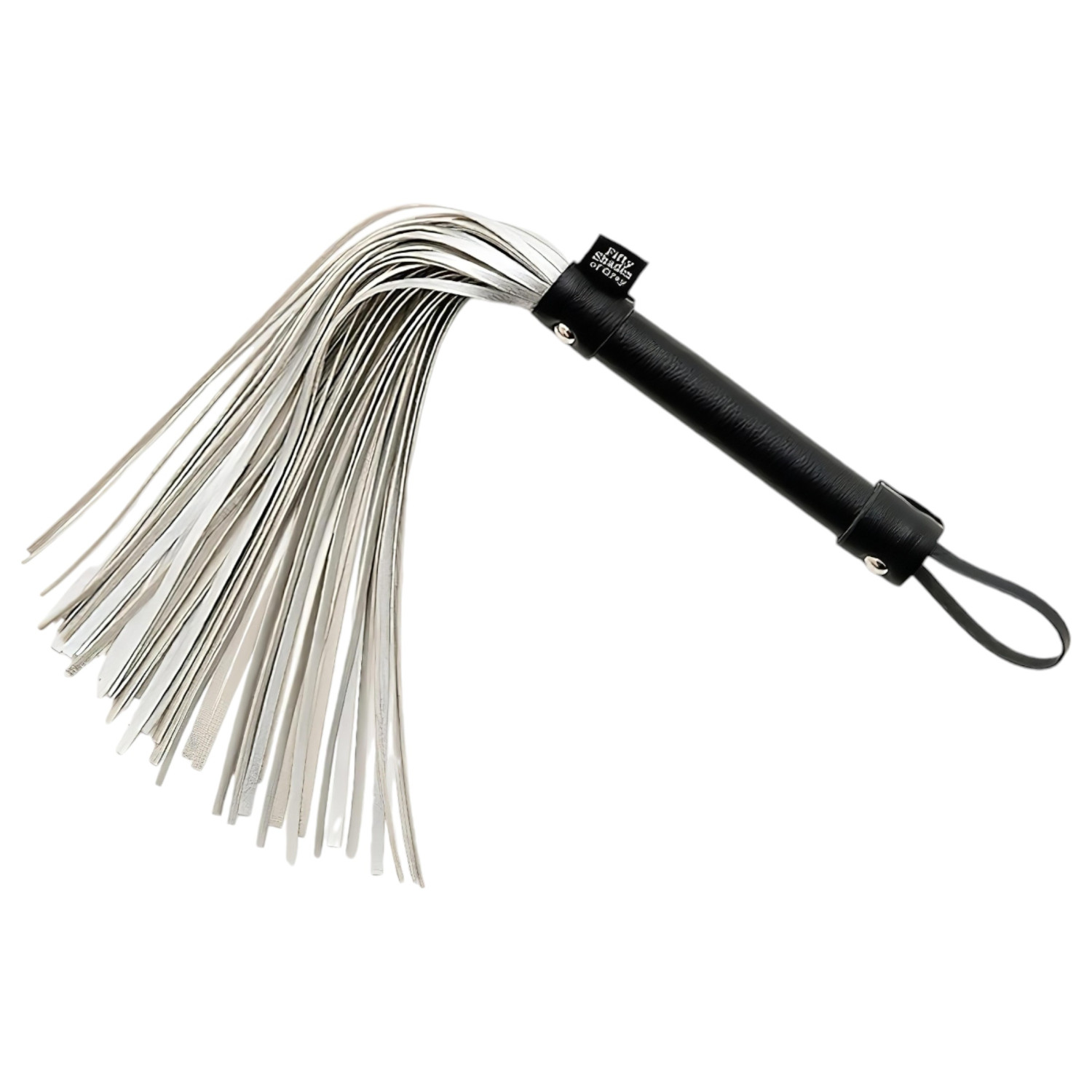 Fouet exclusif inspiré de la collection de Cinquante nuances de Grey ! Un accessoire élégant avec des lanières argentées toutes douces, un manche en bois robuste recouvert de cuir noir, et une poignée pratique pour une prise en main parfaite.