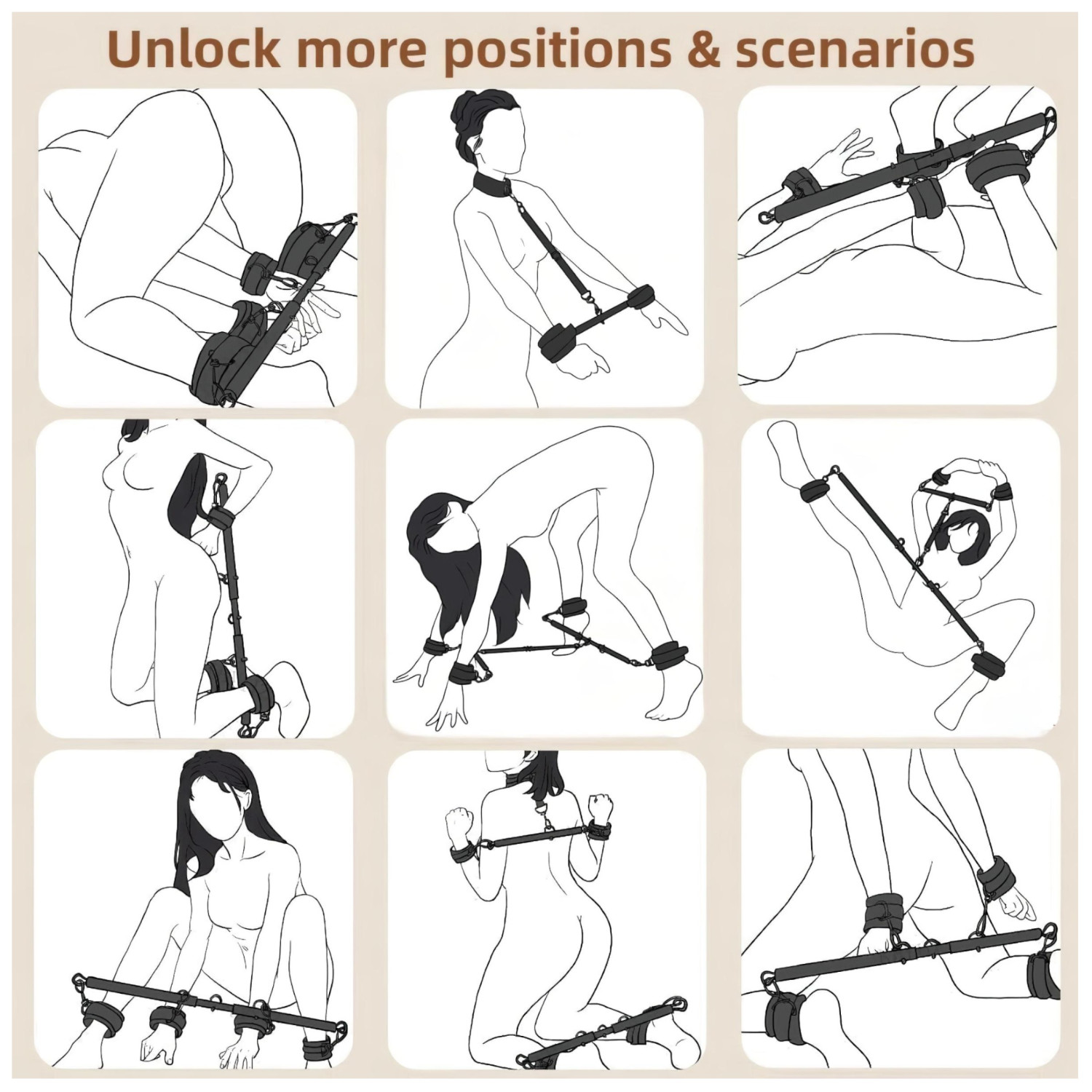 Plonge dans un monde de fantasmes sans limites avec ce set de bondage barre d’écartement tout en métal - menottes réglables, barres solides et col confortable pour explorer la domination !