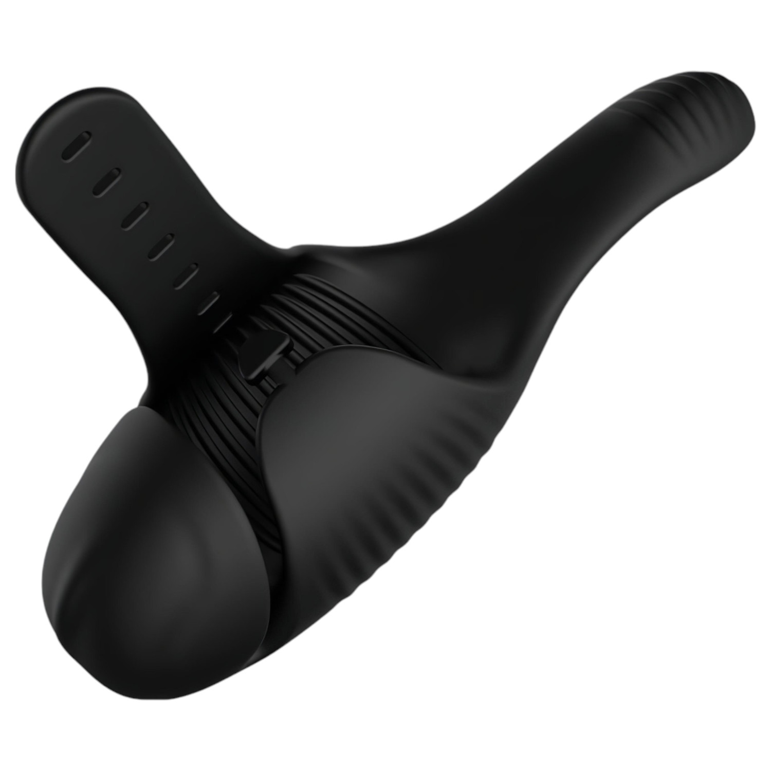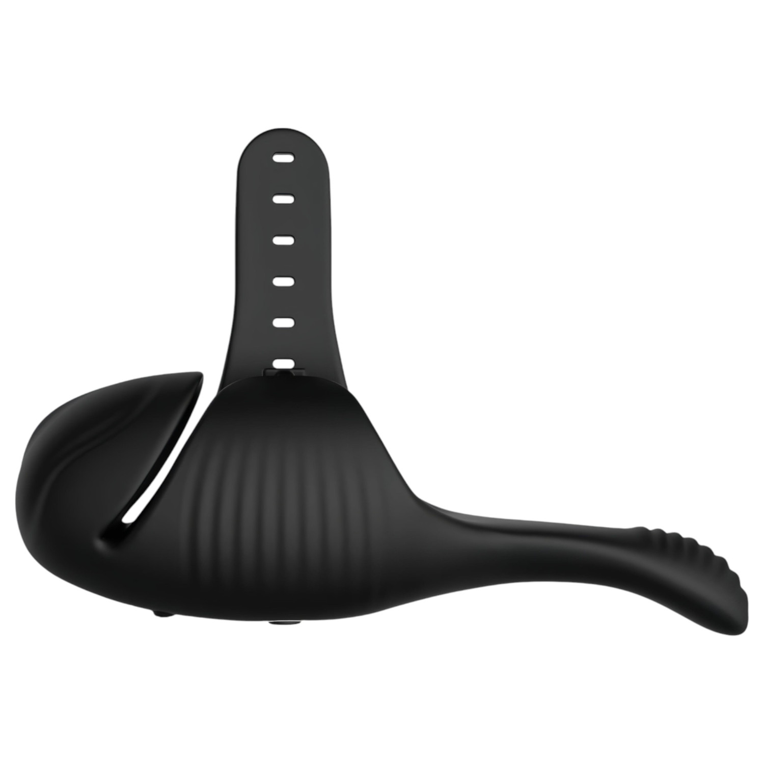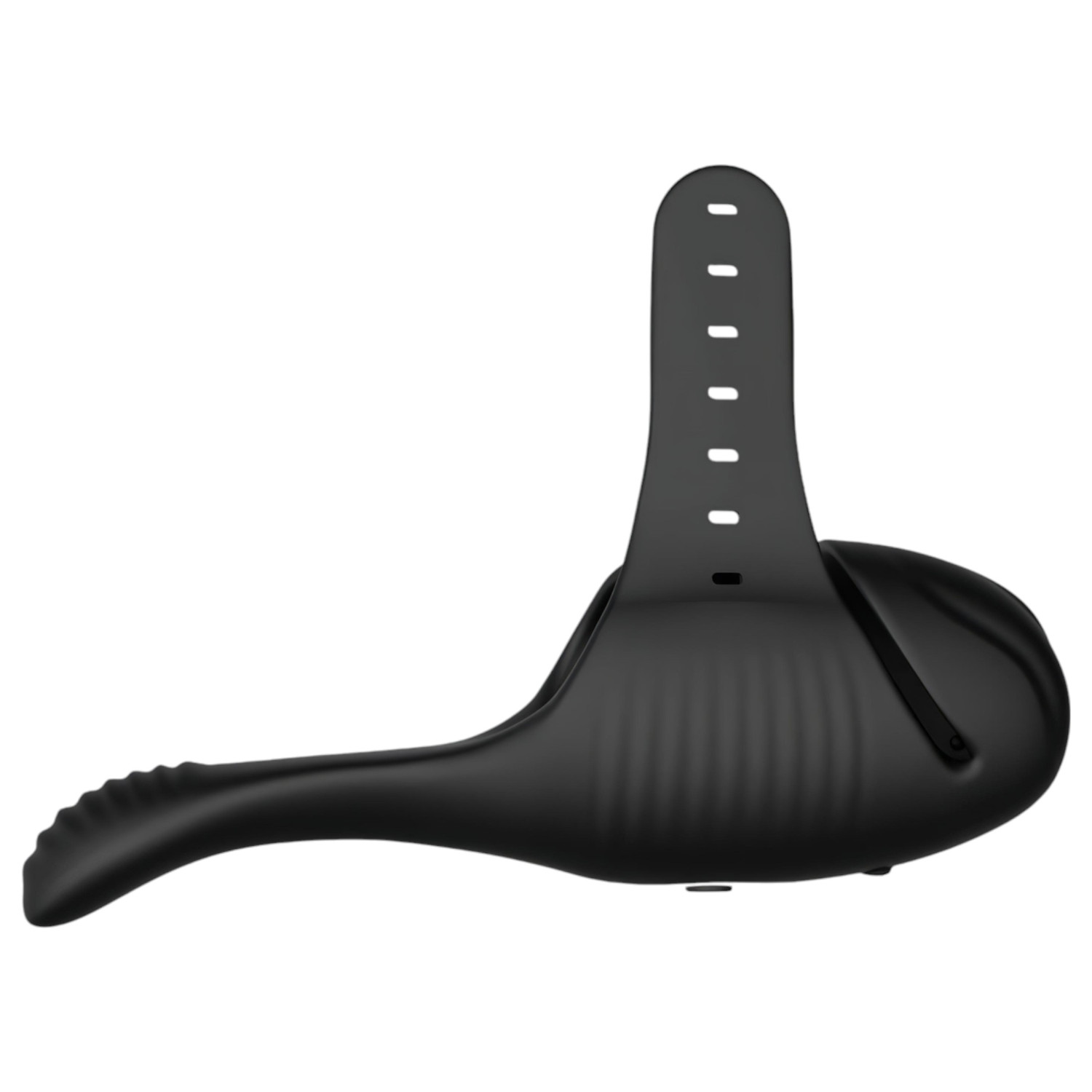 Serre la sangle pour couvrir ton gland sous la tête souple, puis lance la vibration.