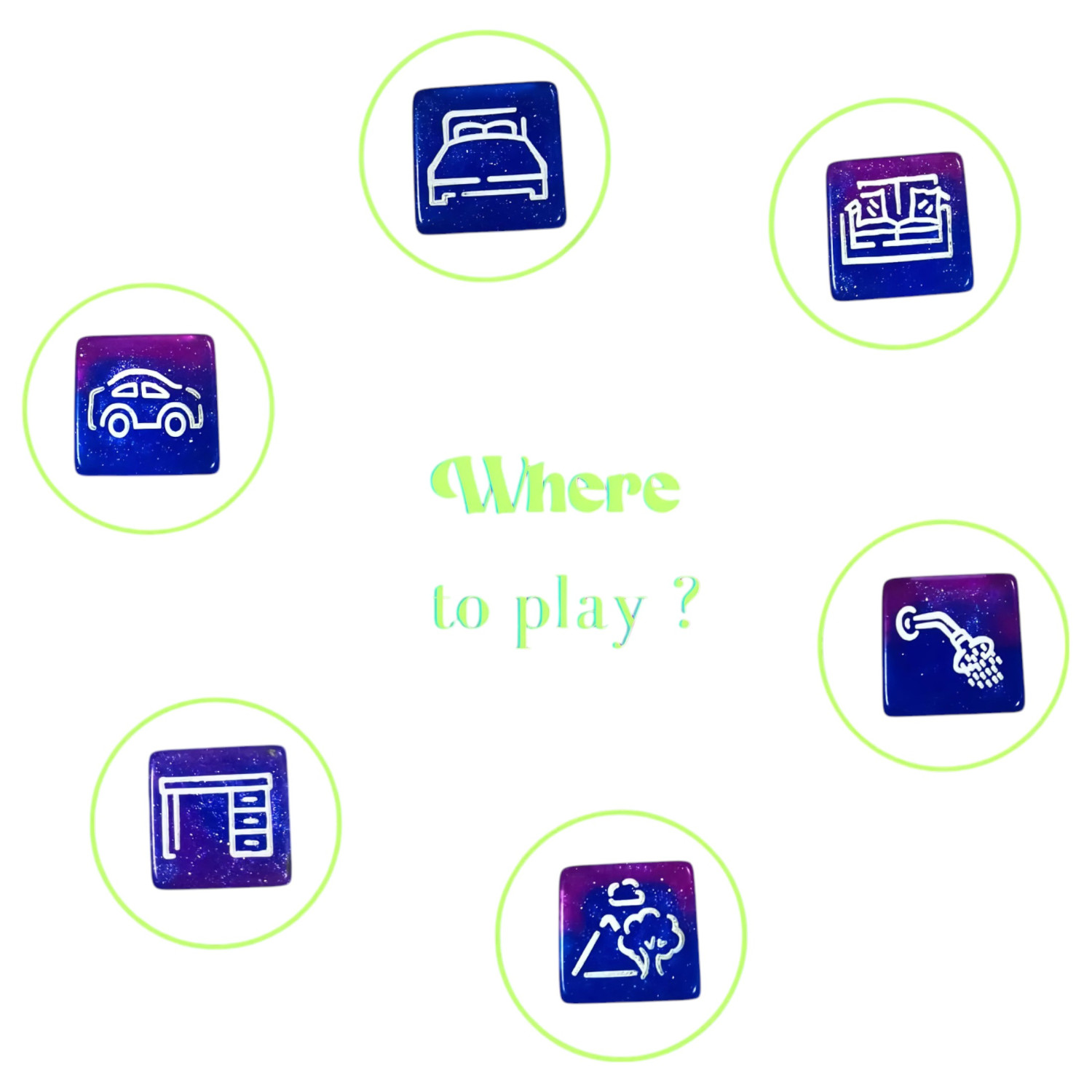 • Trois dés différents : Un pour l’action, un pour la partie du corps, un pour l’endroit - de quoi multiplier les combinaisons à l’infini !
