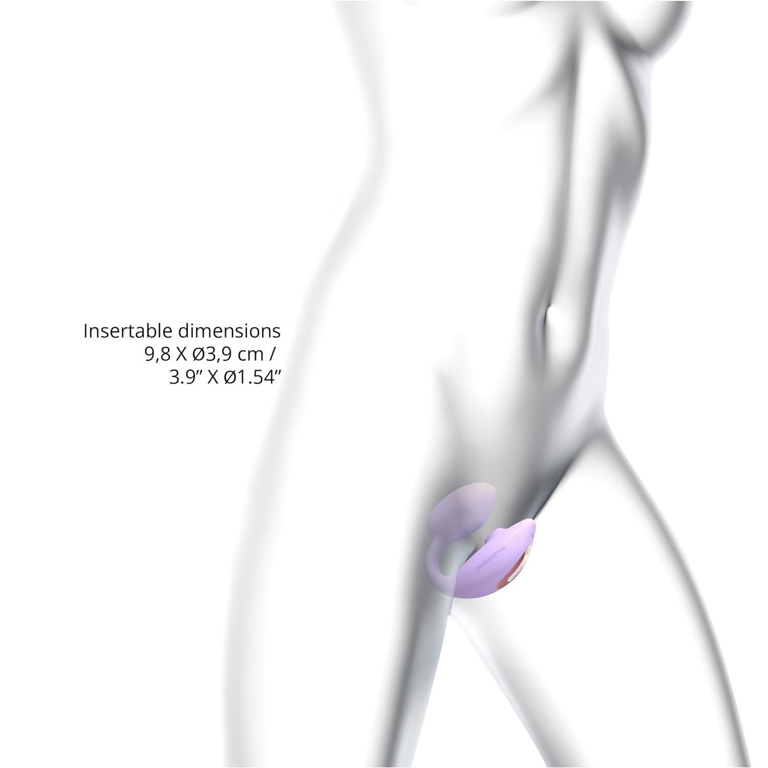 Insère la partie en forme d’œuf dans le vagin, la partie clito vient bien se poser à l’extérieur. Grâce à sa forme ergonomique et flexible, tu peux facilement l’ajuster. Pour l’allumer, reste appuyé longtemps sur le bouton.
