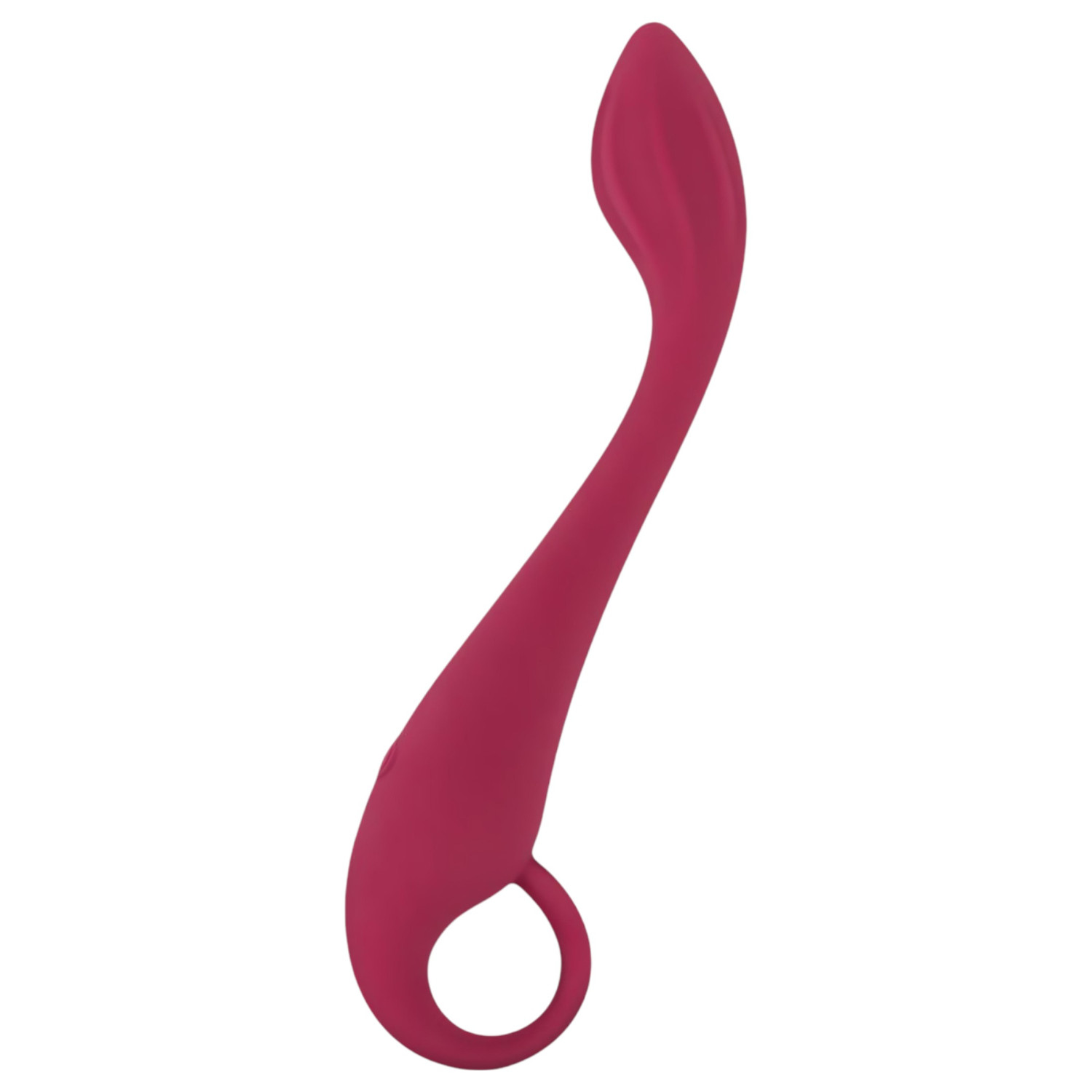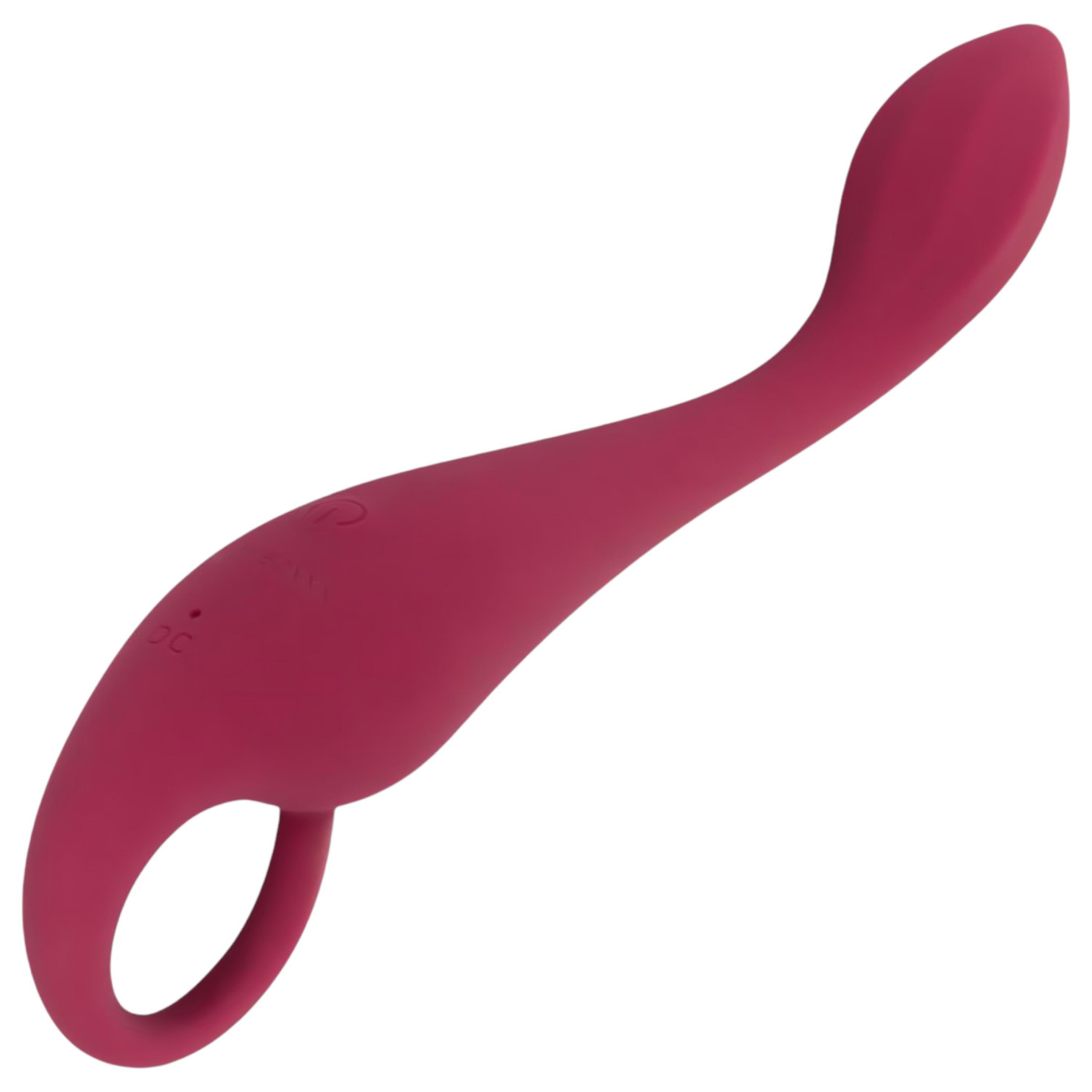 • Forme originale avec col hyper fin, tête nervurée spéciale point G, et anneau pour une prise en main au top