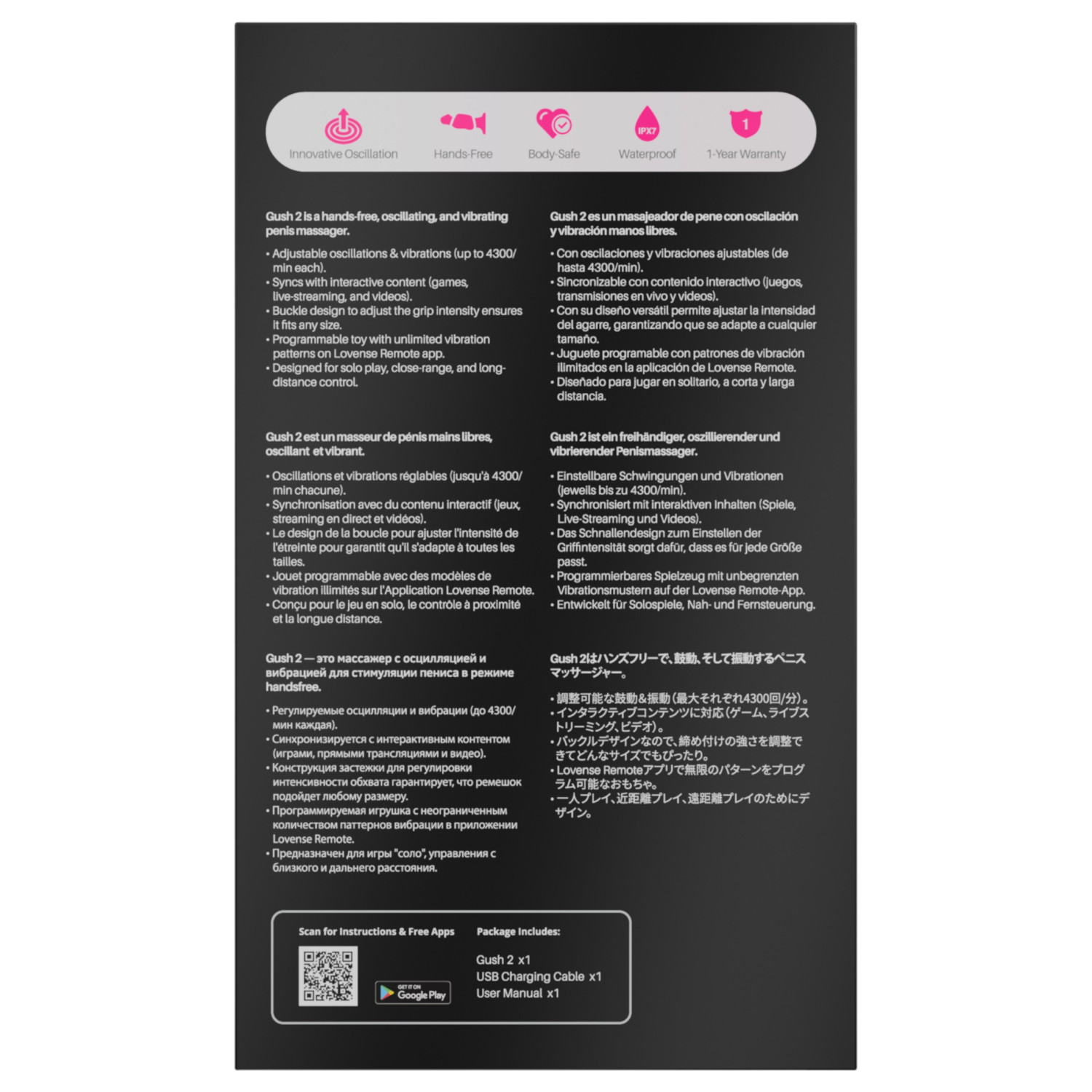 Découvre des sensations intenses et personnalisées avec le Lovense Gush 2, le tout dernier vibromasseur gland télécommandé qui fait passer le plaisir à un niveau supérieur grâce à ses modes de vibration et de pulsation.