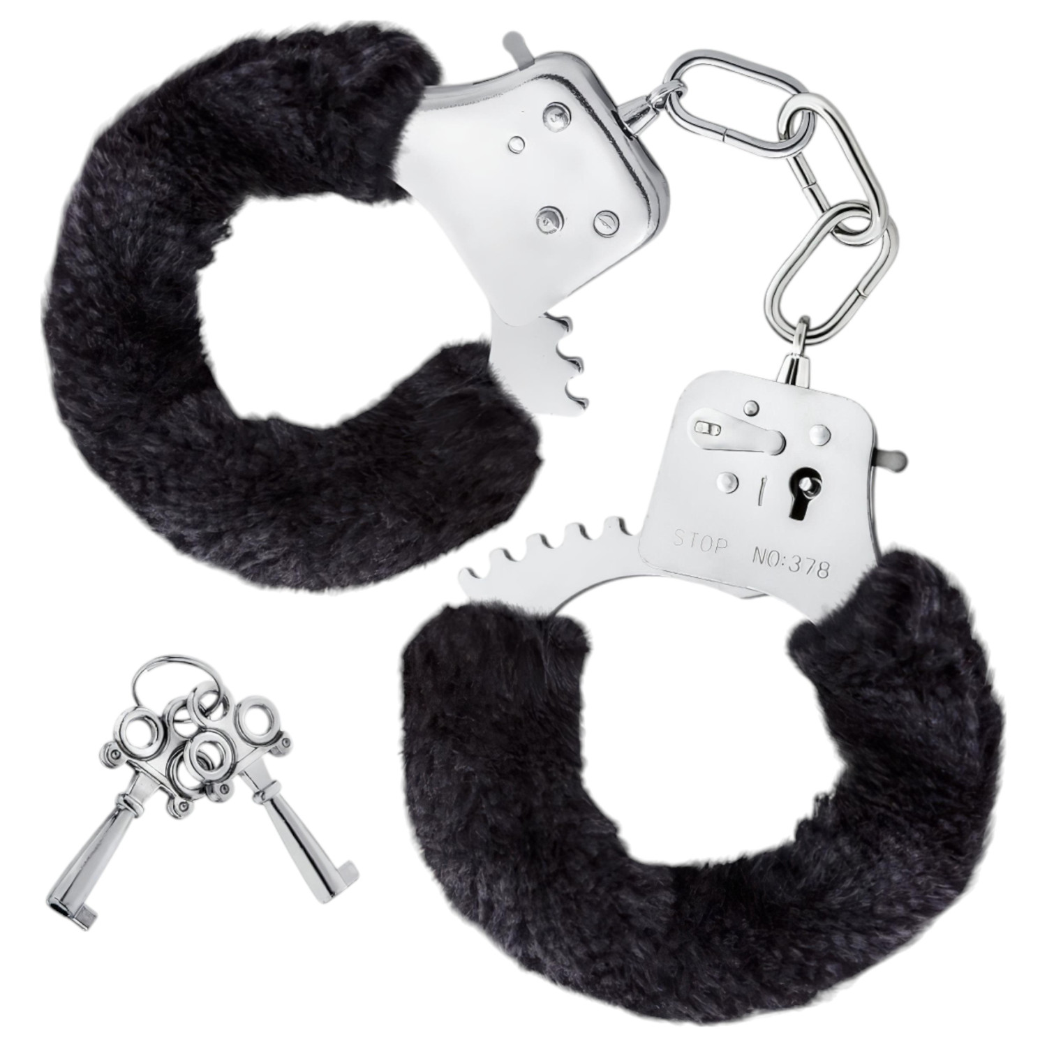 • 2 menottes en métal, recouvertes d’une housse en peluche amovible, reliées par une petite chaîne