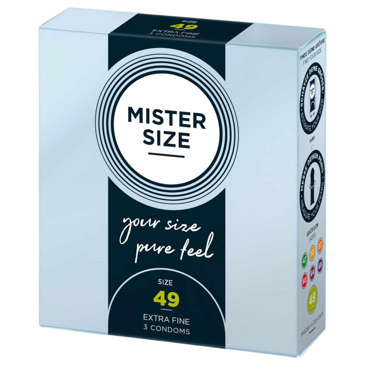 • 3 préservatifs Mister Size taille 49 mm, emballés individuellement.