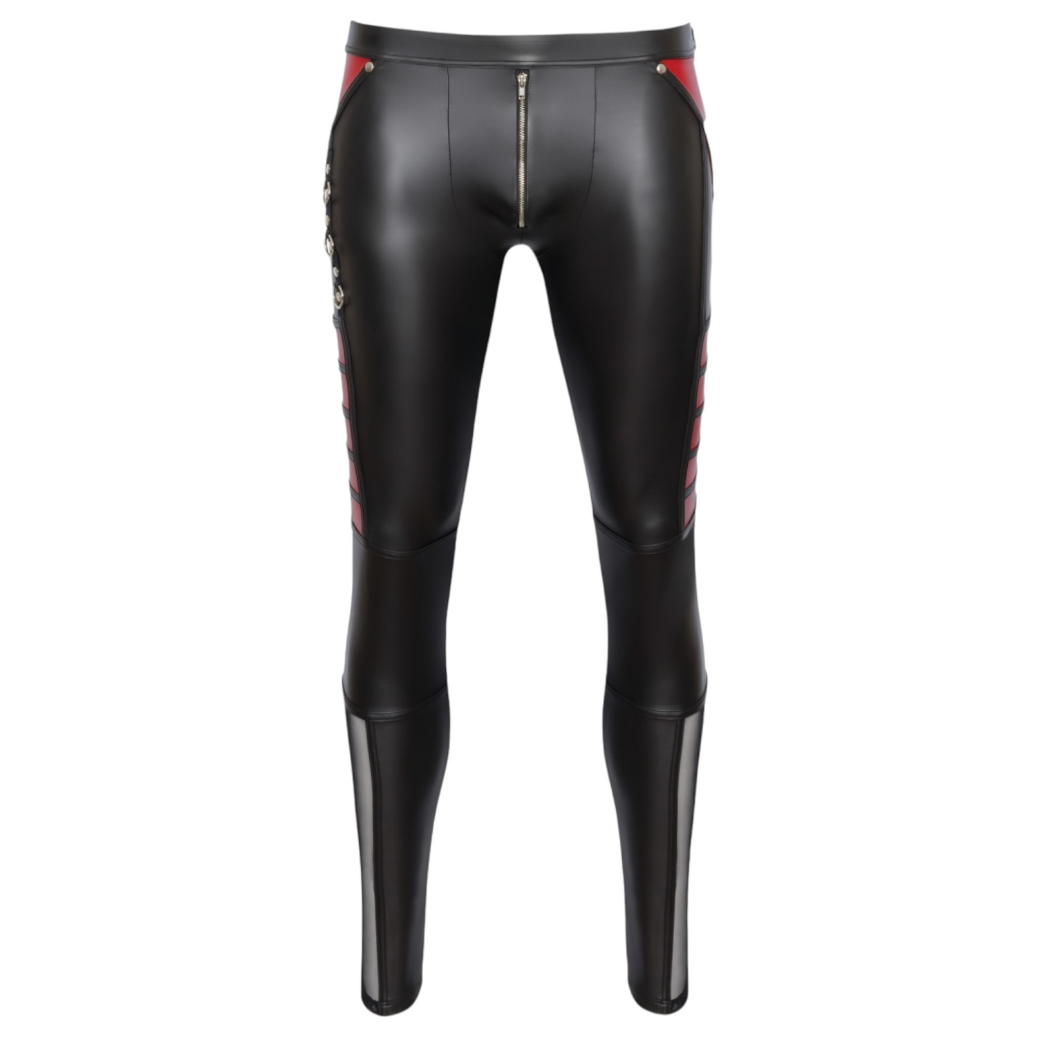 • Design sexy : Décorations voyantes avec clous, anneaux, empiècements rouges et résille - parfait pour les amateurs de style dominant.