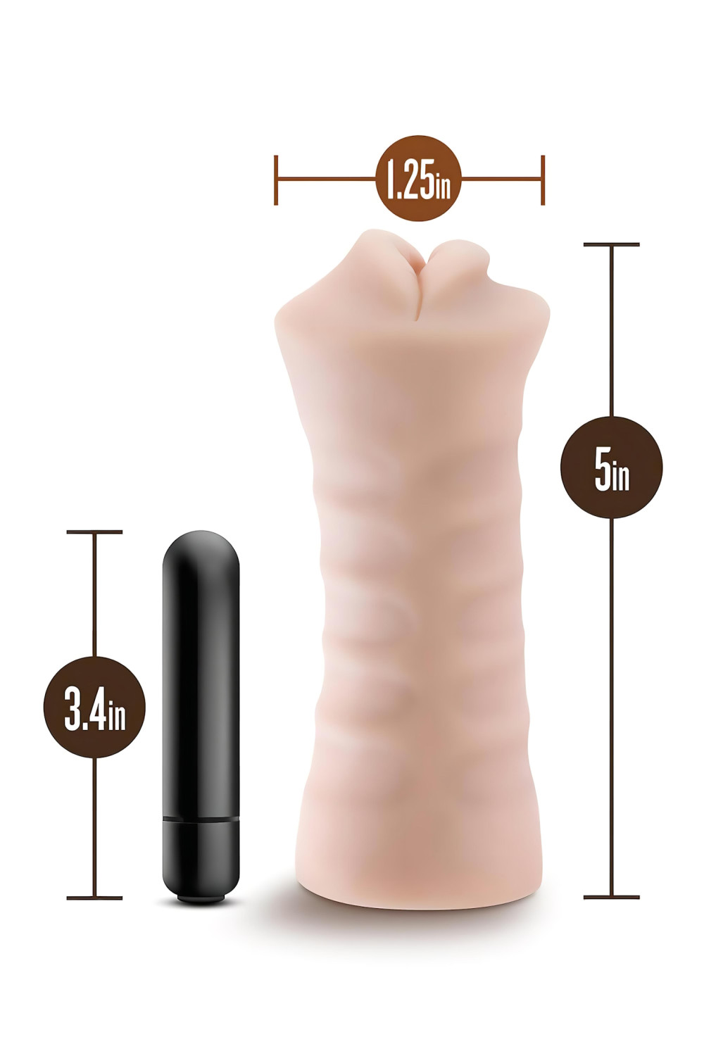 Lubrifiez le masturbateur avec un lubrifiant à base d'eau, puis insérez le mini-vibrateur dans l'ouverture pour une expérience plus intense. Pénétrez et profitez de la surface intérieure serrée et stimulante.