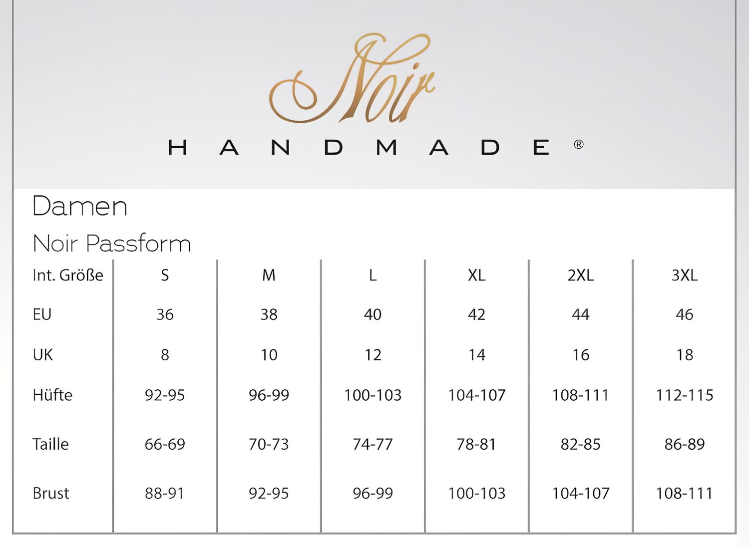 • Choisis toujours la taille en te référant au guide des tailles spécifique à la collection Noir - disponible parmi les photos.