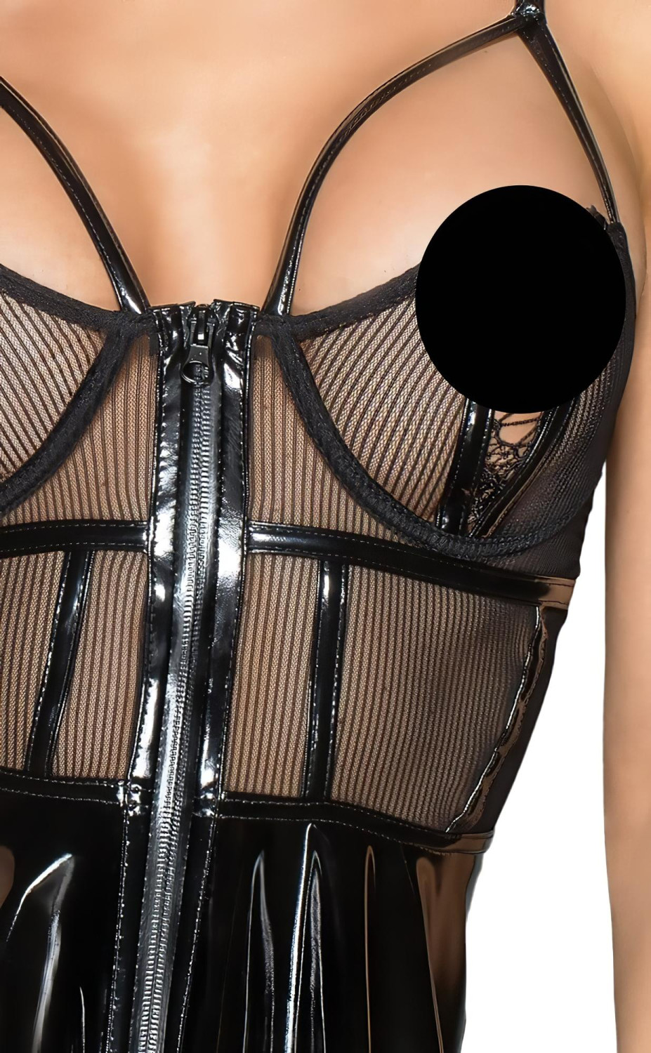 • Détails osés : Soutien-gorge structuré, bordé de bretelles brillantes qui encadrent parfaitement les seins - même les tétons peuvent se révéler.
