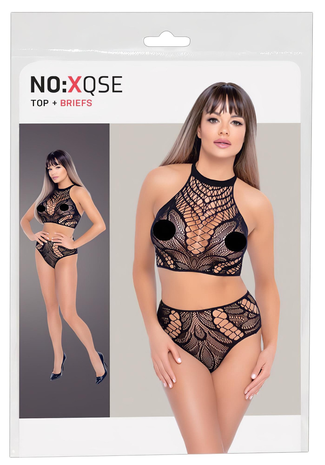 NO:XQSE - robe filet deux pièces noire (S-L)