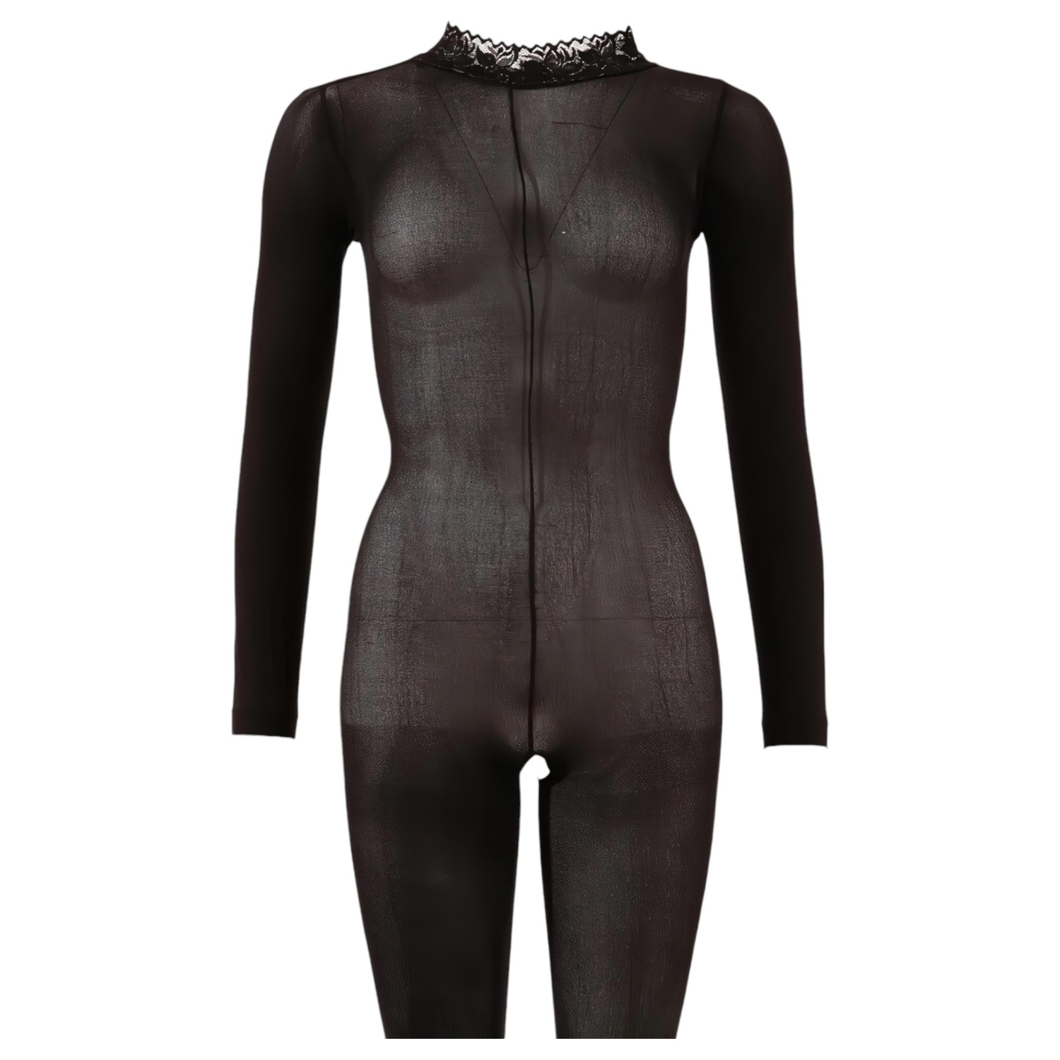 • Combinaison noire à manches longues, tissu légèrement transparent