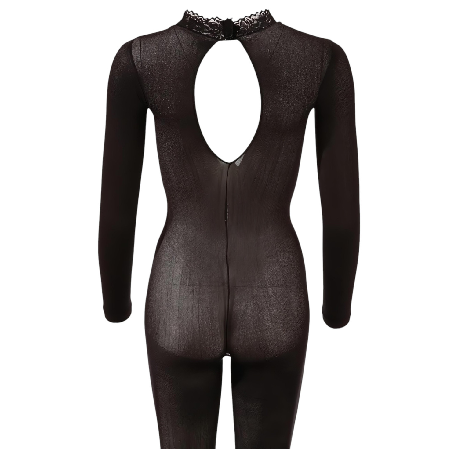 • Combinaison noire à manches longues, tissu légèrement transparent