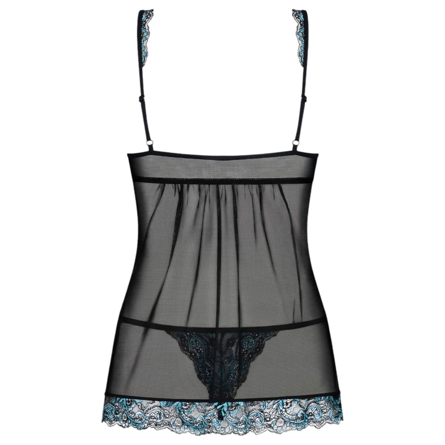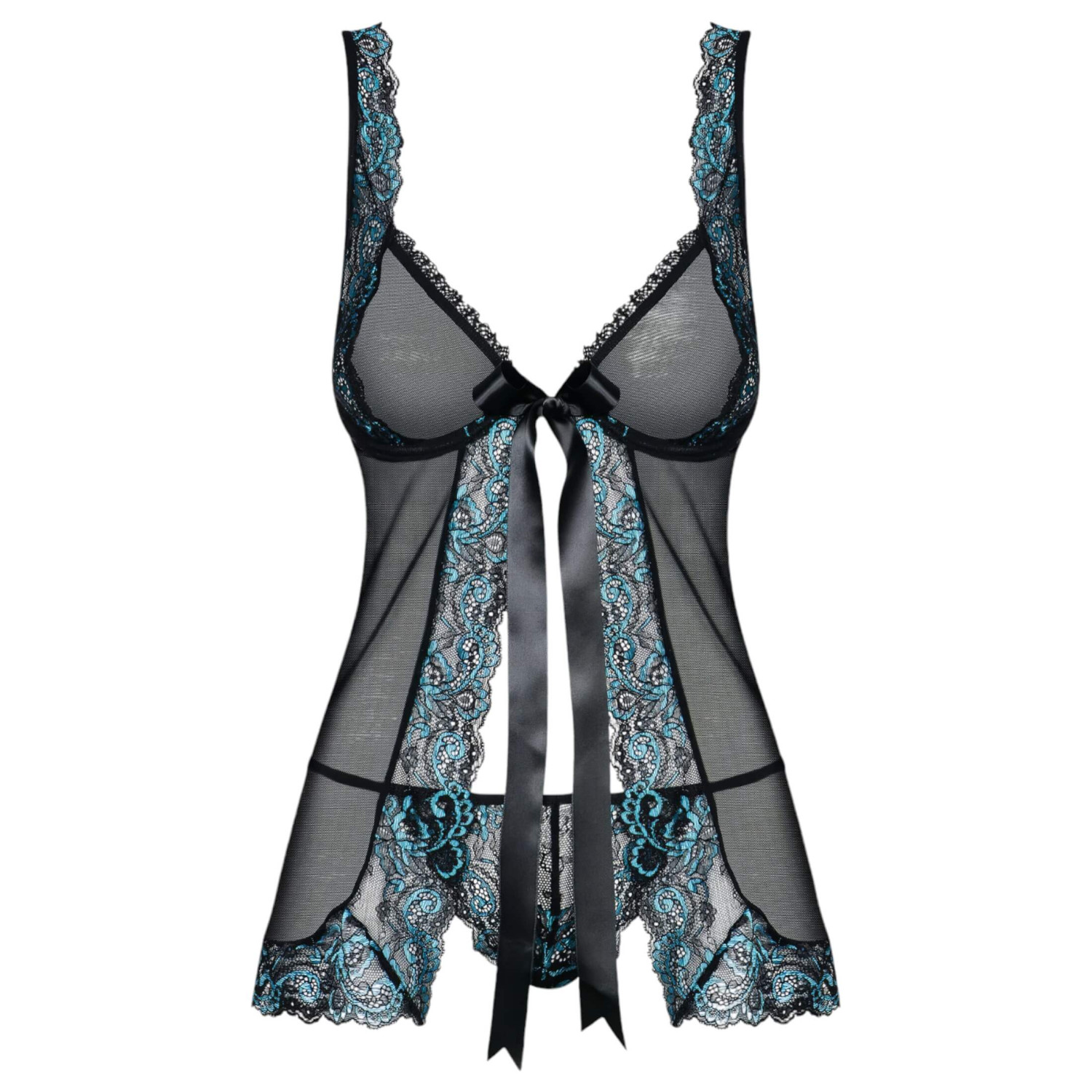 Obsessive Amanta - Nuisette et String Brodés (Noir-Turquoise)
