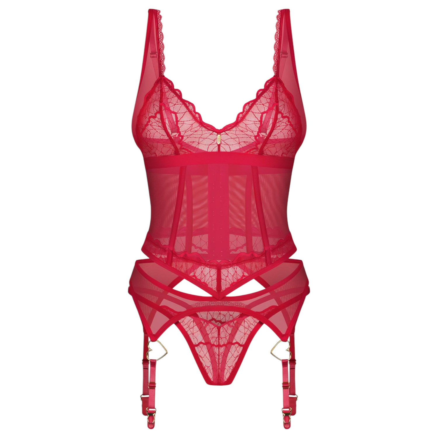 Obsessive Cupide Désir - Ensemble en dentelle transparente (rouge) - L/XL