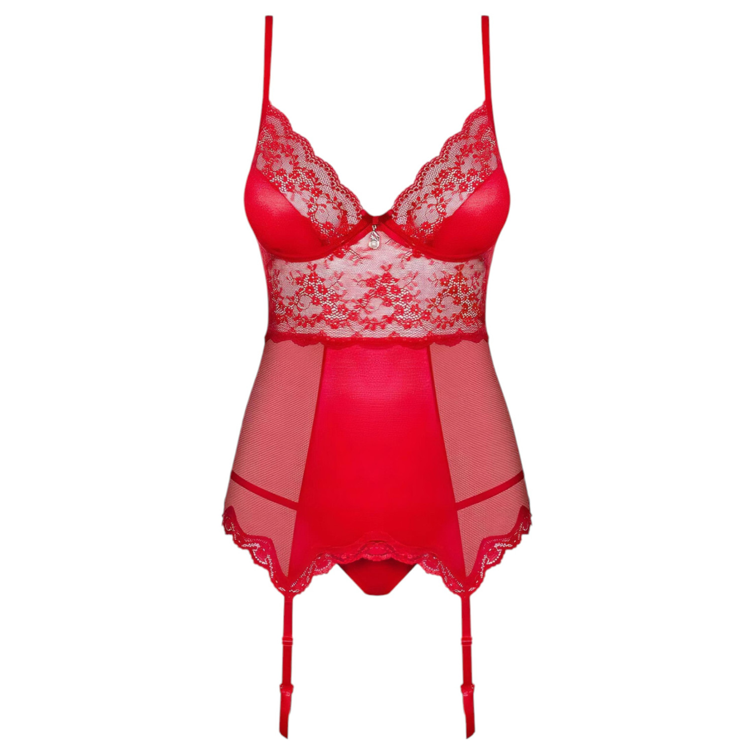 Obsessive Lovica - haut porte-jarretelles en dentelle et string (rouge) - L/XL