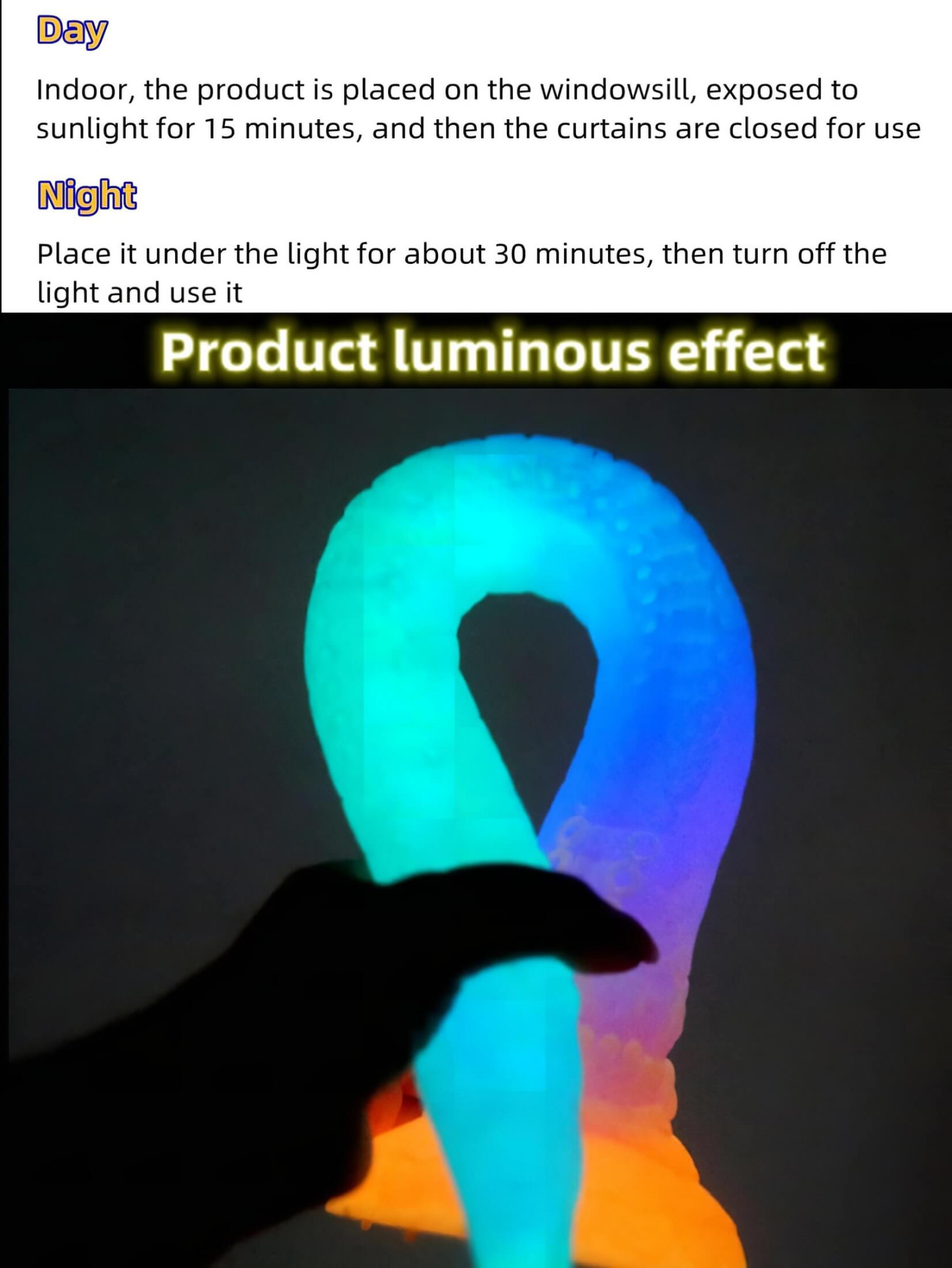 • Technologie Glow-in-the-Dark - le corps scintillant se recharge à la lumière et brille dans l'obscurité