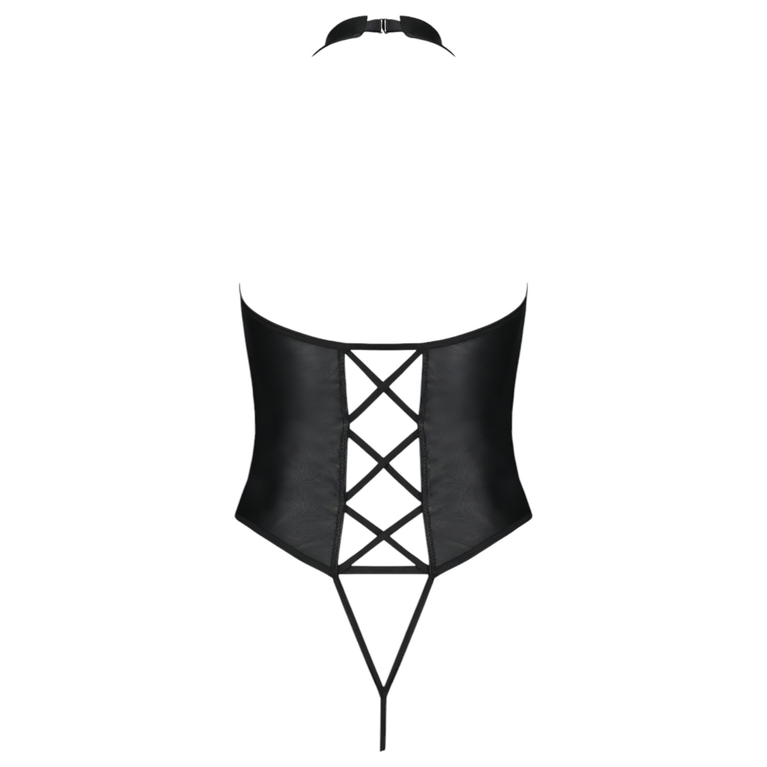 Body effet cuir, ultra sexy, que tu peux porter pendant l’acte grâce à ses ouvertures intégrales à l’entrejambe et côté fesses!