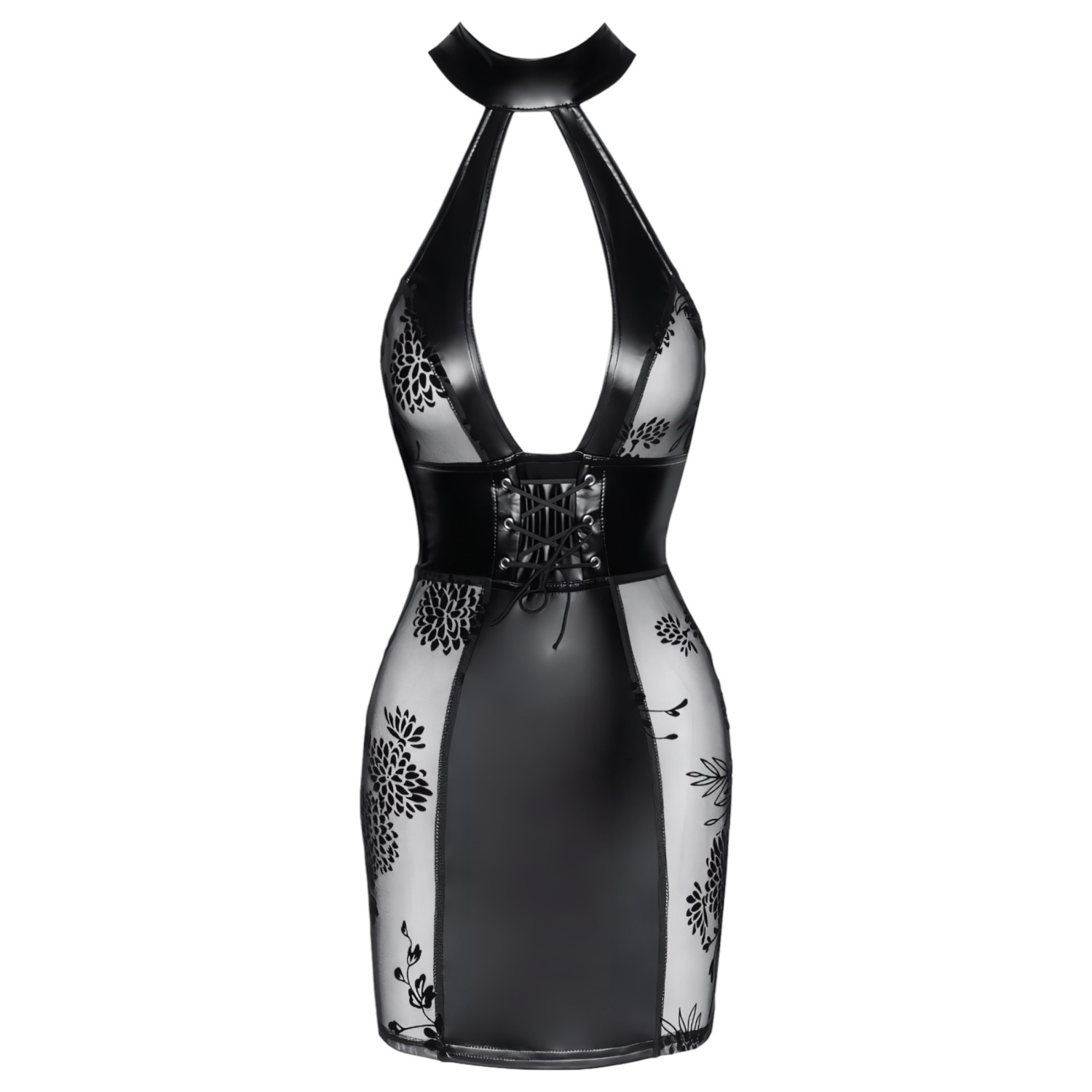• Détails transparents : Empiècements fleuris et transparents sur le haut et sur les côtés de la jupe, pour dévoiler subtilement la peau et les tétons.
