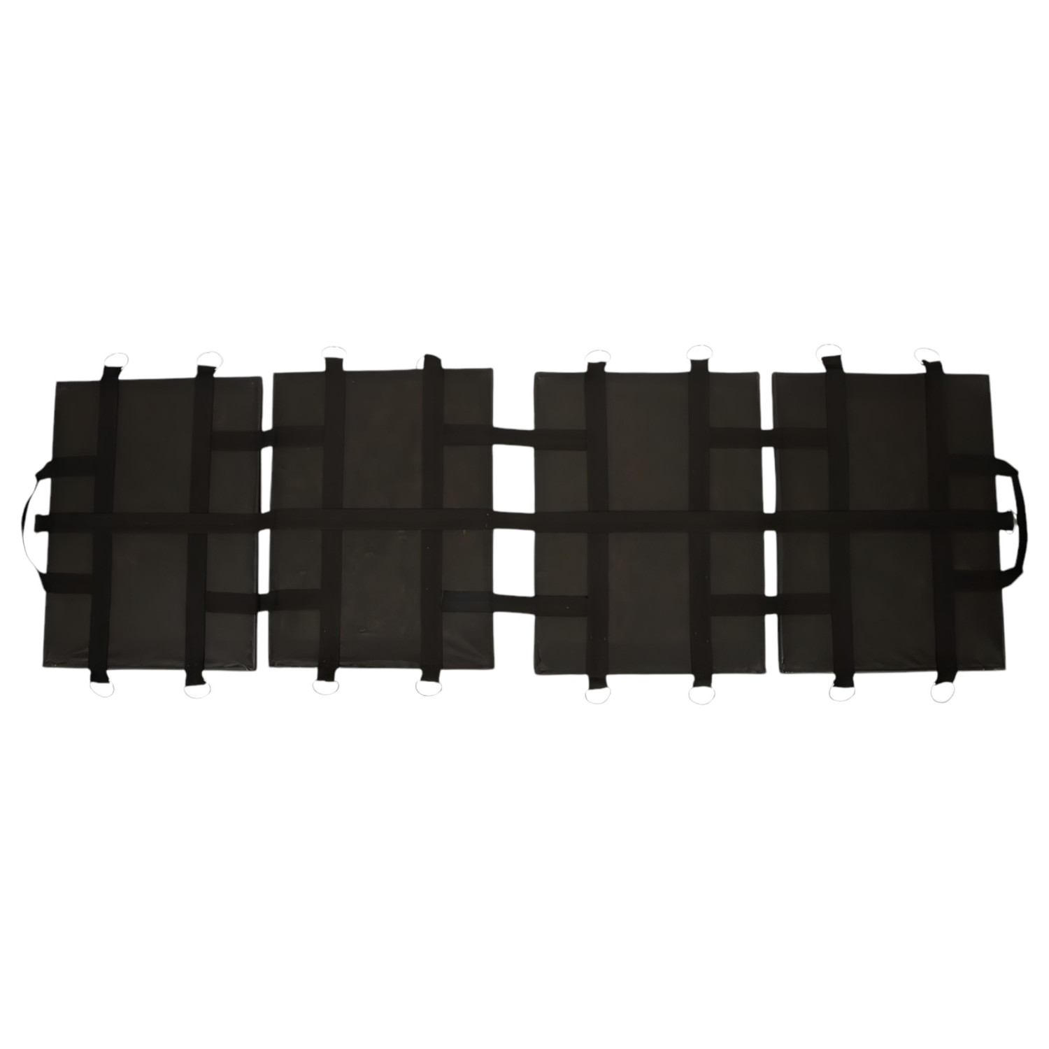 • Surface de couchage matelassée, pliable (avec sangles, attaches et anneaux en D)
