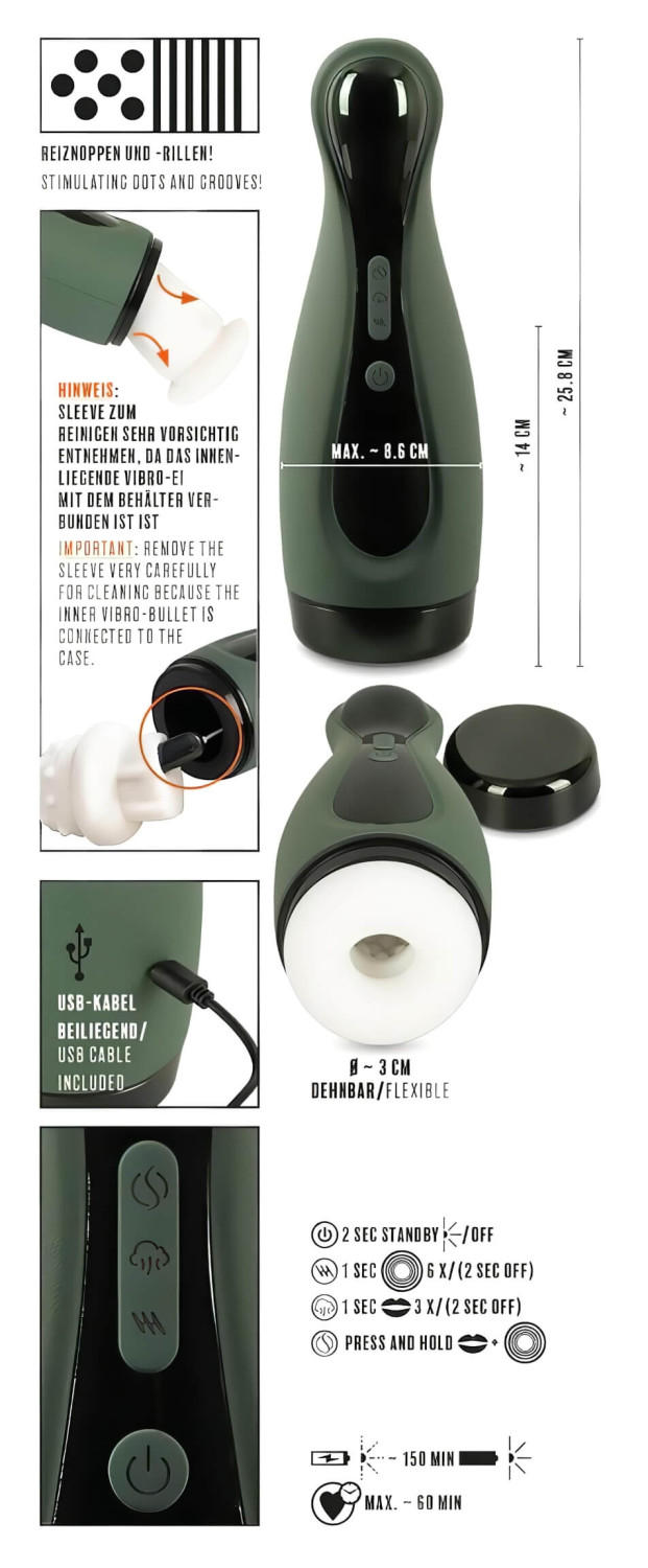 Rebel 2 Function - masturbateur vibrant et aspirant rechargeable