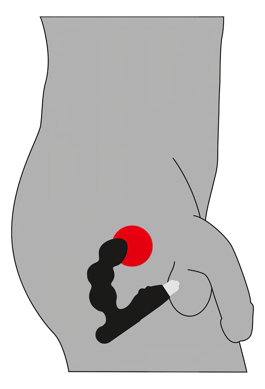 • Insère délicatement le vibromasseur prostatique en veillant à ce que la poignée stimule également la zone du périnée