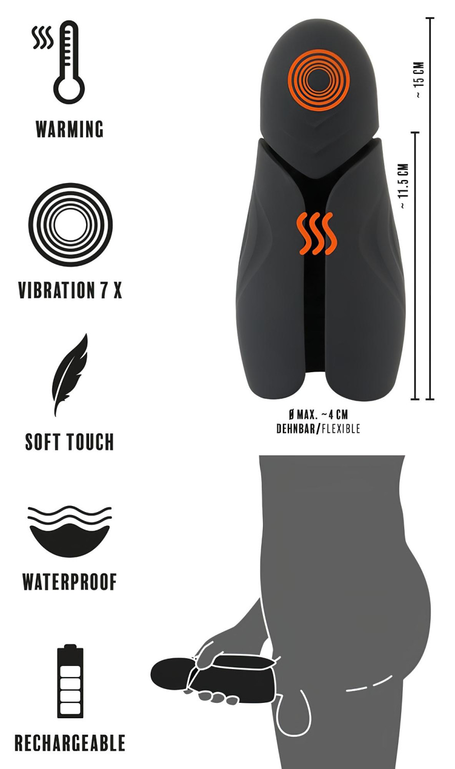 Applique du lubrifiant à base d’eau sur ton pénis et à l’intérieur du masturbateur. Place-le ensuite autour de ton sexe. Active les vibrations avec le bouton et choisis le mode qui te fait le plus envie. Profite d’un plaisir unique grâce à la combinaison de la chaleur et des vibrations.