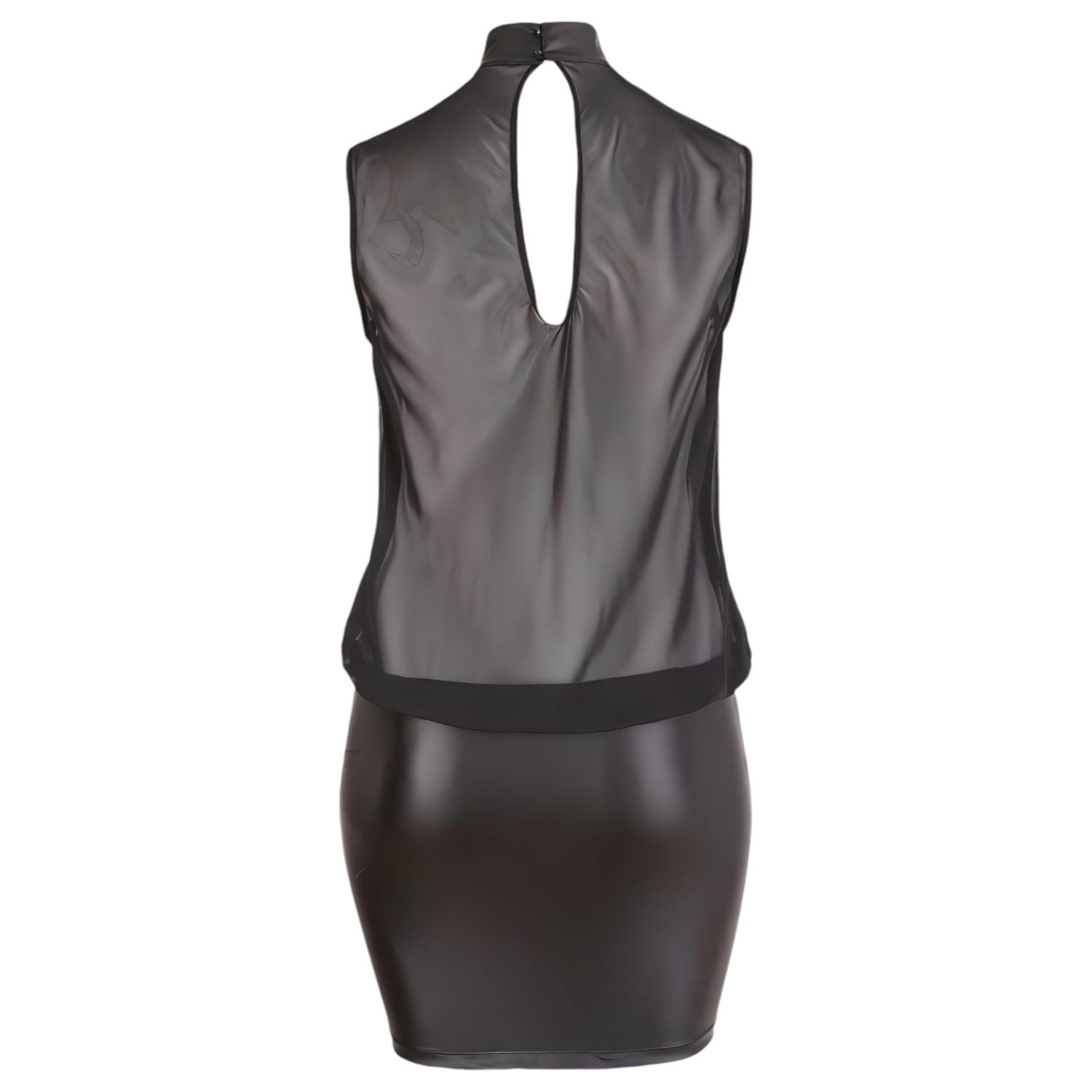 • 1 mini-robe noire avec col montant et haut transparent