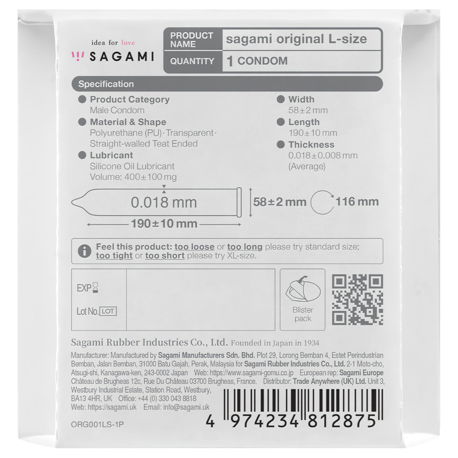 Caractéristiques du produit - Sagami Original 0.01 L-Size (1 pièce)