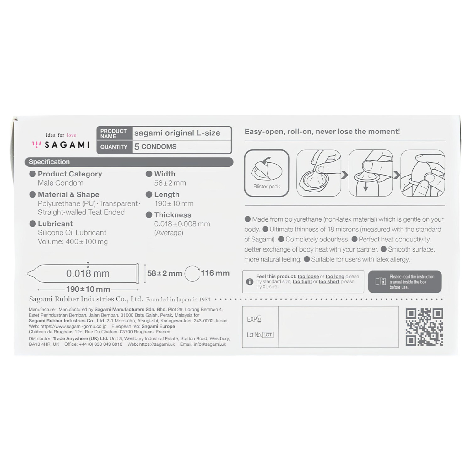 • 5 préservatifs Sagami Original 0.01 L-Size
